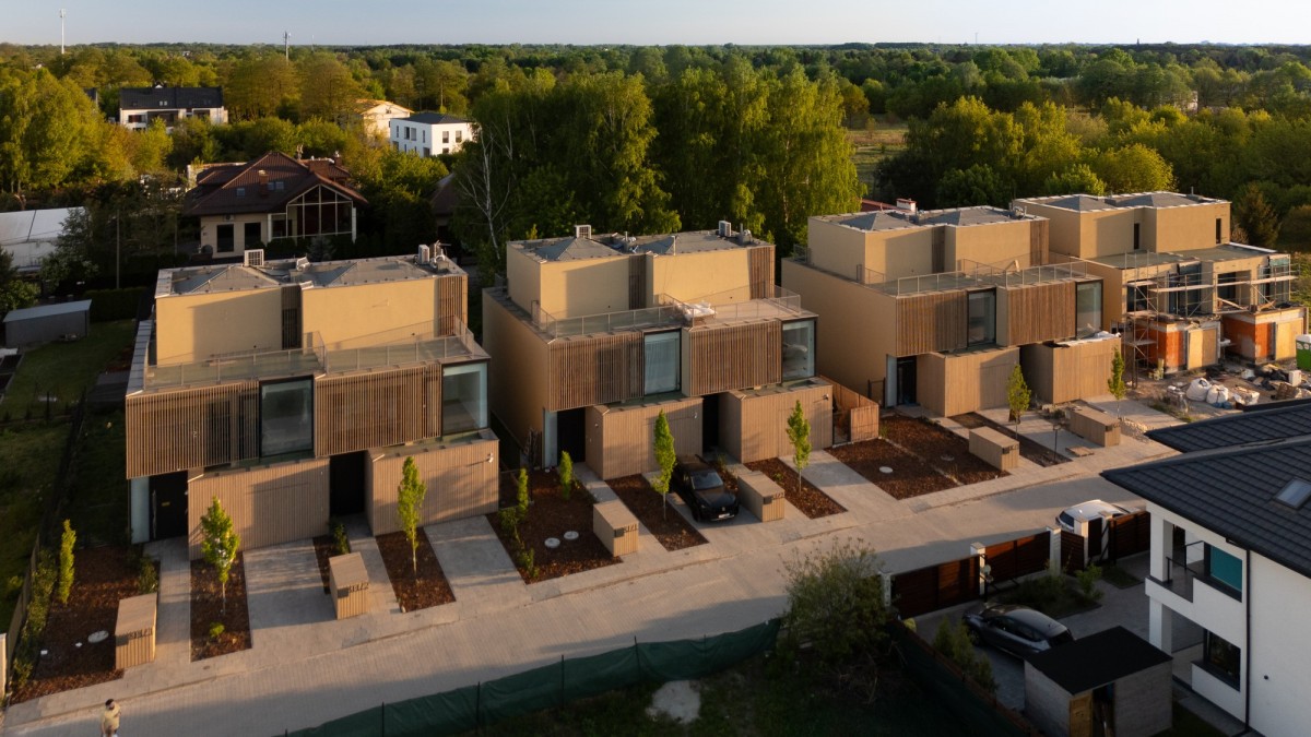 Kameralne osiedle z niską zabudową i dużą ilością zieleni