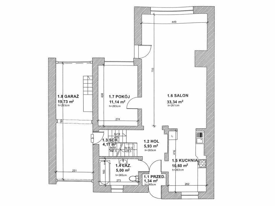 Parter - łazienka, kuchnia, salon, gabinet, garaż