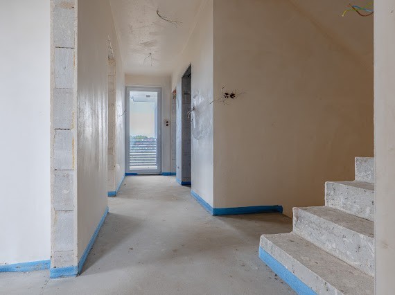 Nowoczesny dom w zabudowie bliźniaczej o powierzchni 170 m² z dodatkowym poddaszem użytkowym (ok. 60 m²), garażem jednostanowiskowym i ogrodem, położony w Michałowie-Grabinie przy granicy Warszawy. Nieruchomość sprzedawana w stanie deweloperskim,