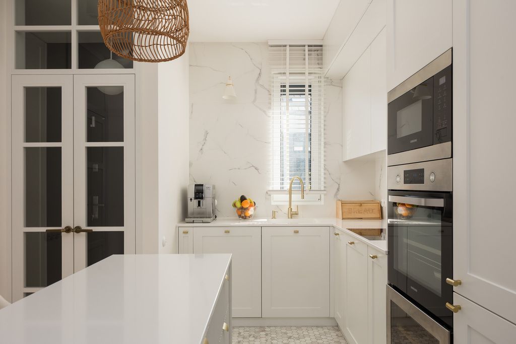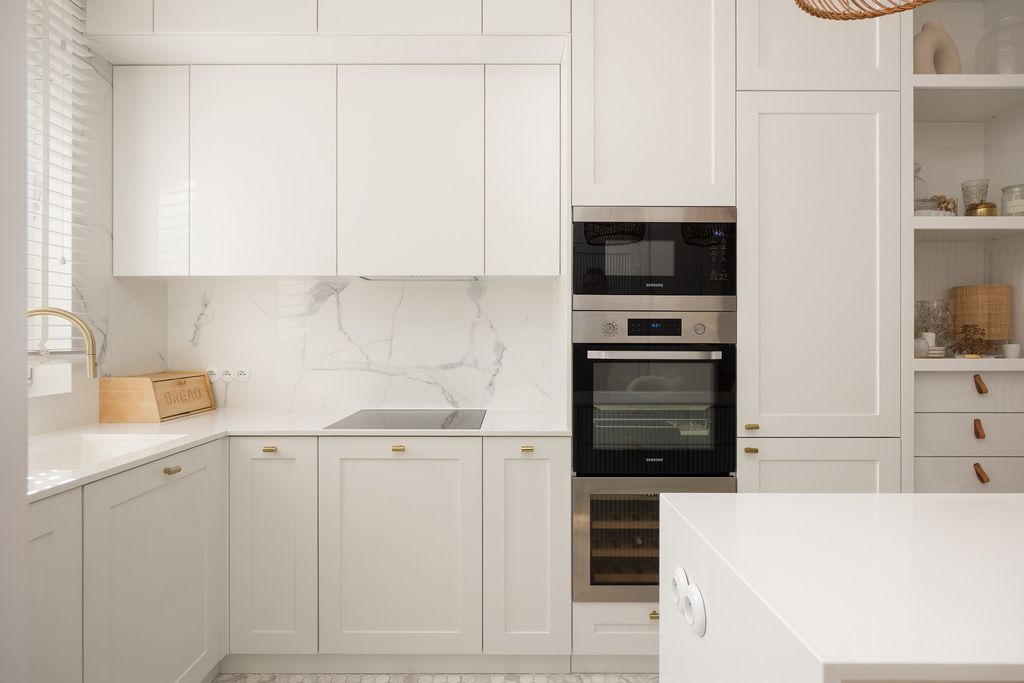 • Nowoczesna kuchnia z kamiennymi blatami i wysokiej klasy sprzętem -5,96 m²,