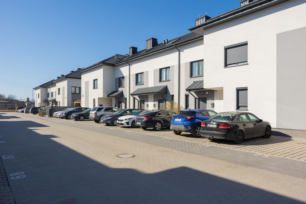 Przed budynkiem znajdują się dwa prywatne miejsca postojowe, dostępne za dodatkową opłatą 25 000 zł za każde. Dom ogrzewany jest gazowo i podłączony do miejskiej kanalizacji. Na uwagę zasługują również niskie koszty utrzymania – opłata za części wspólne wynosi jedynie 191 zł miesięcznie, co czyni tę nieruchomość wyjątkowo ekonomiczną w eksploatacji.
