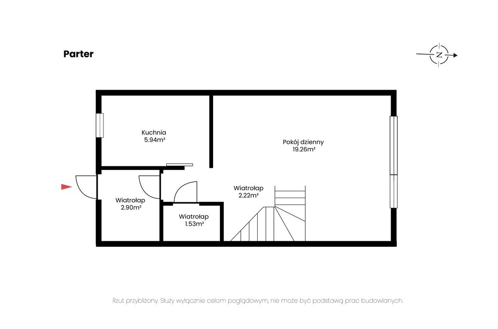 • Wiatrołap z pojemną szafą w zabudowie – 2,90 m²,
