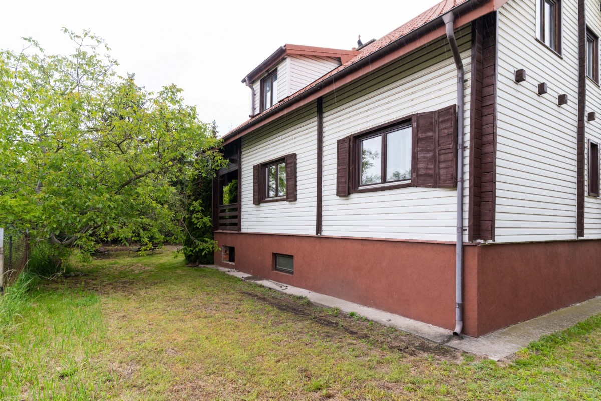 Na dużej, zagospodarowanej działce o powierzchni 1017 m2 (ok.30 m2/30 m2), znajduje się dwukondygnacyjny, całoroczny dom jednorodzinny o powierzchni ok 150 m2 . Wybudowany w 1998r w technologii drewnianej (bal kanadyjski), podpiwniczony, ocieplony i obłożony sidingiem .