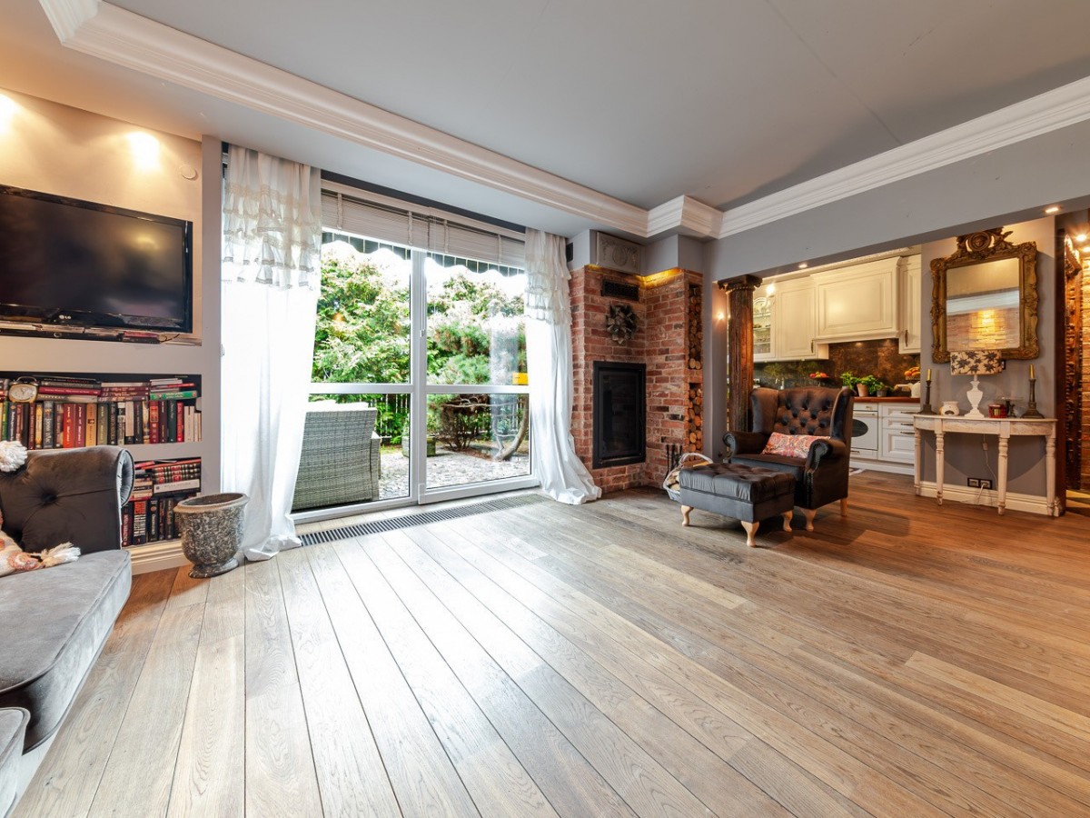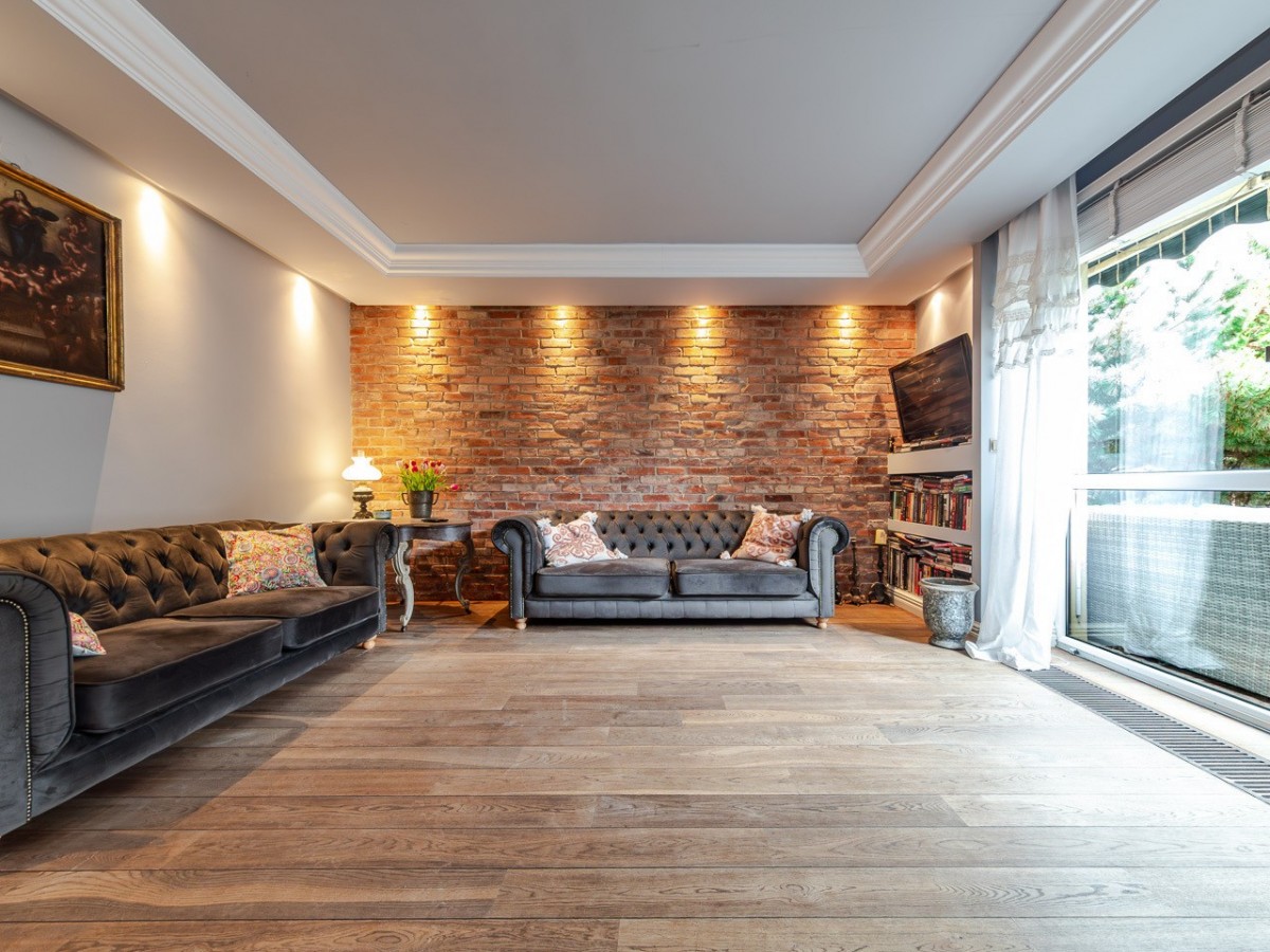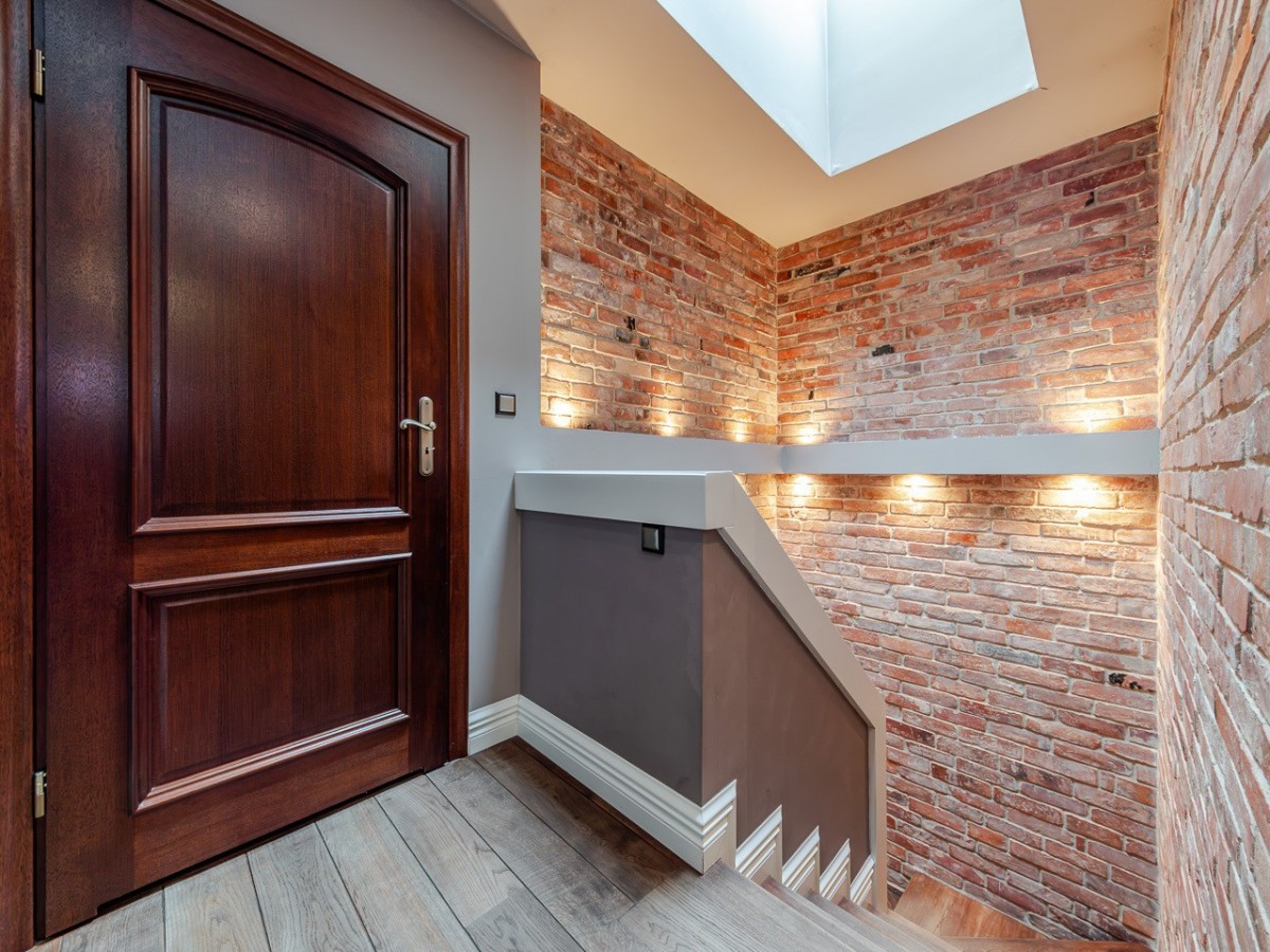 • oryginalna cegła na ścianach (salon oraz klatka schodowa)