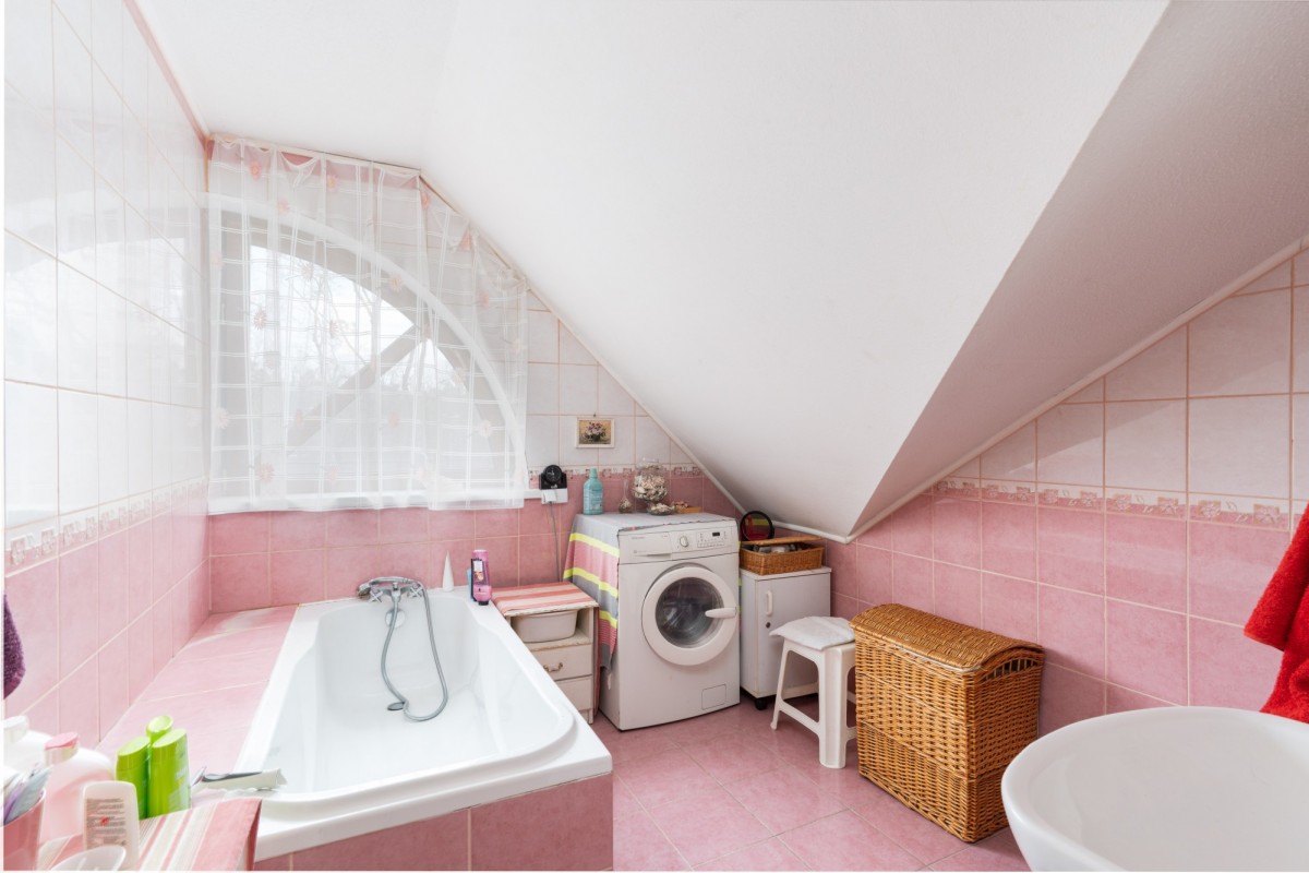 Do budynku przylega murowany garaż, z którego jest bezpośrednie wejście do domu.