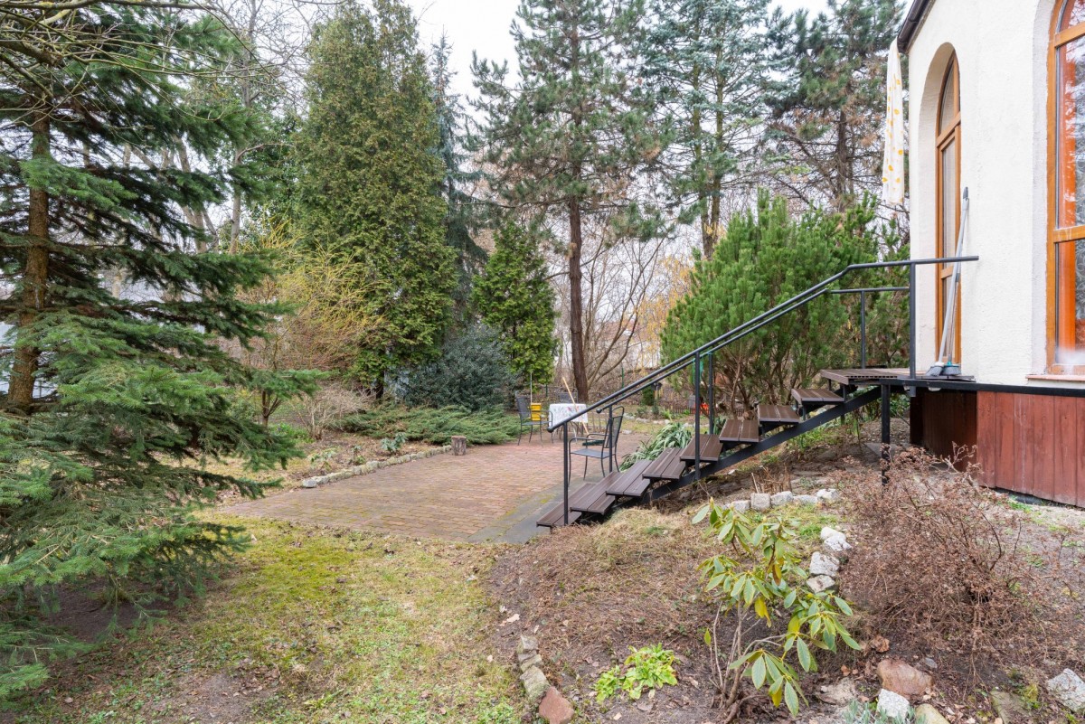 Zadrzewiony ogród jest znakomitym miejscem do wypoczynku.