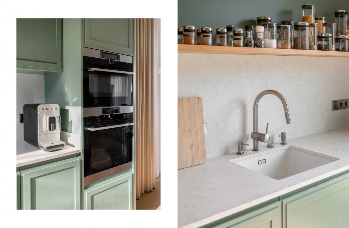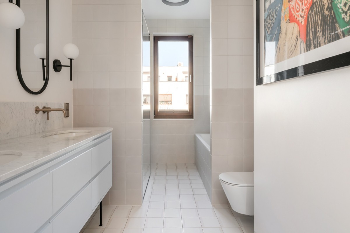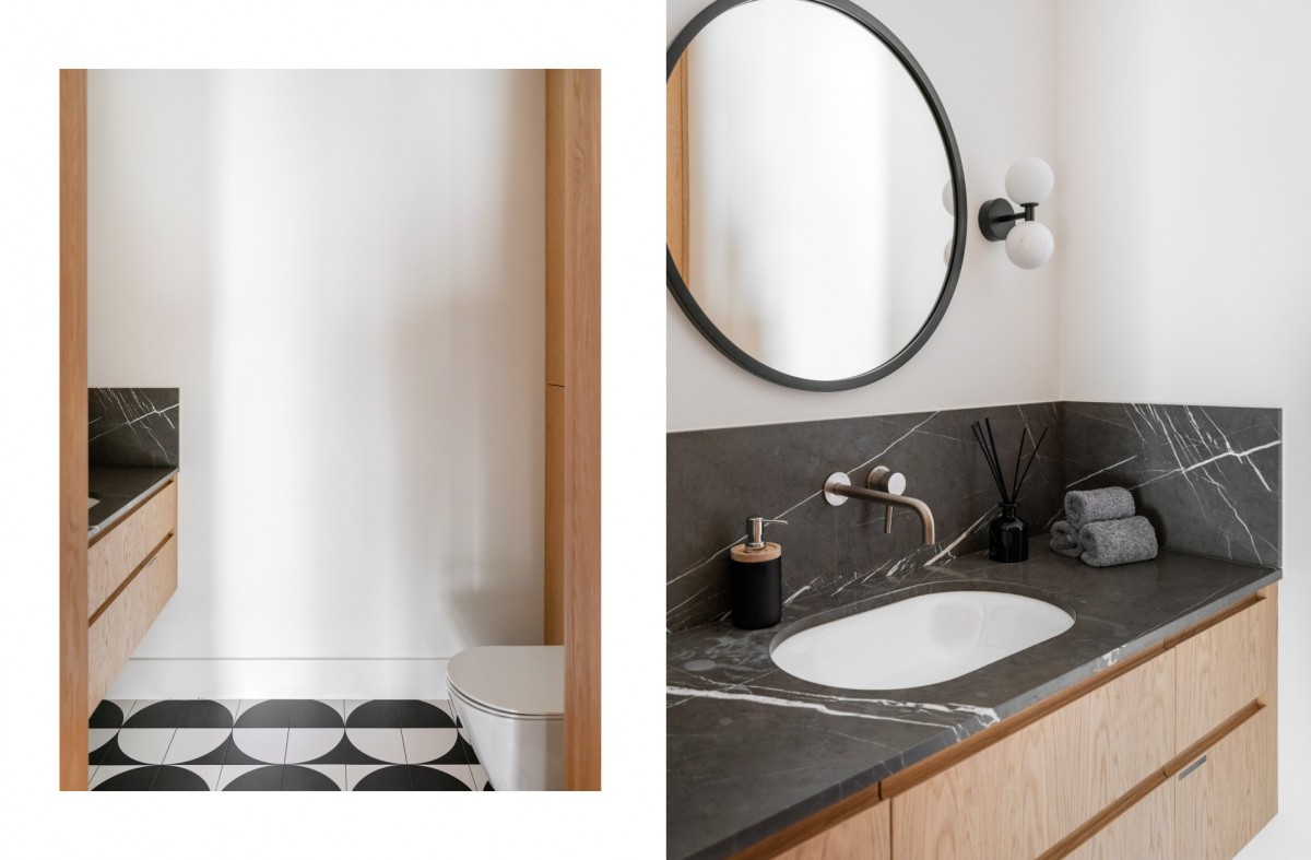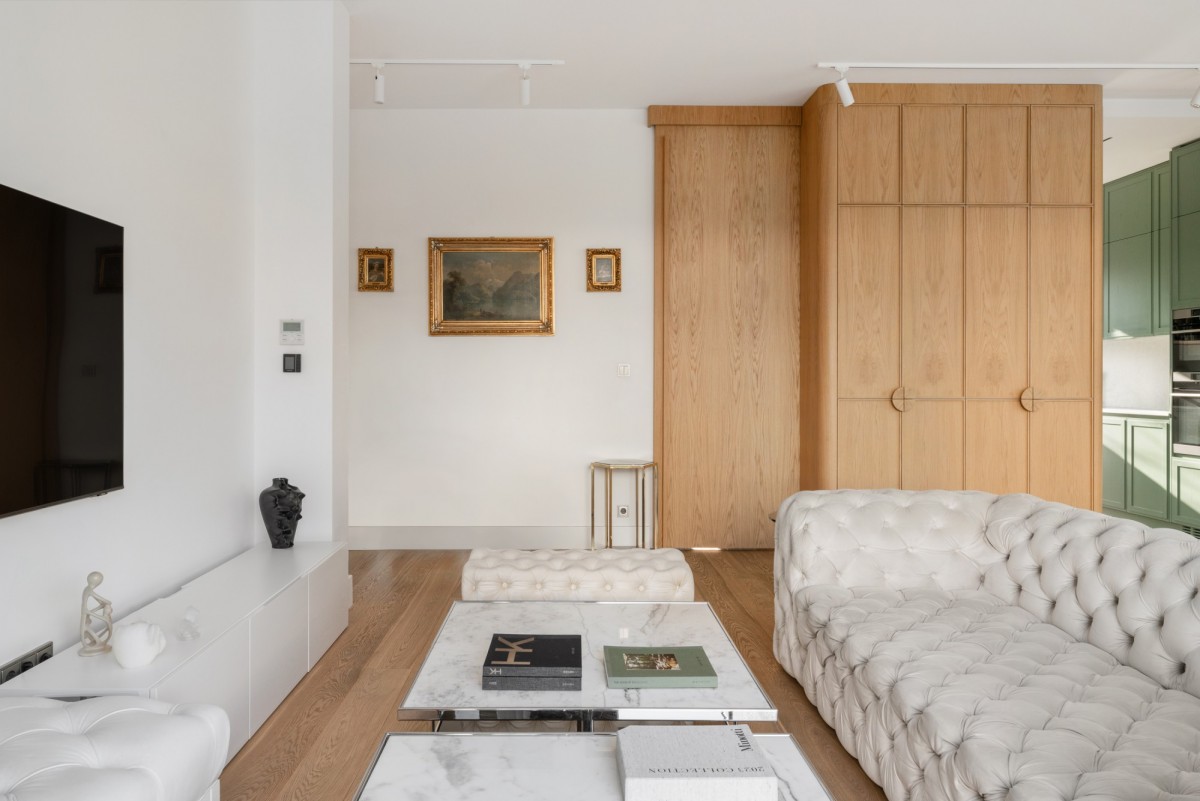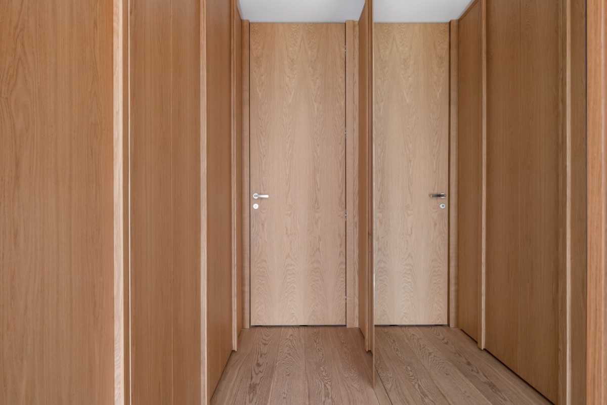 • High-quality finishes: oak flooring in living areas and bedrooms, full-height wooden doors, custom-designed built-in furniture, and natural stone in bathrooms