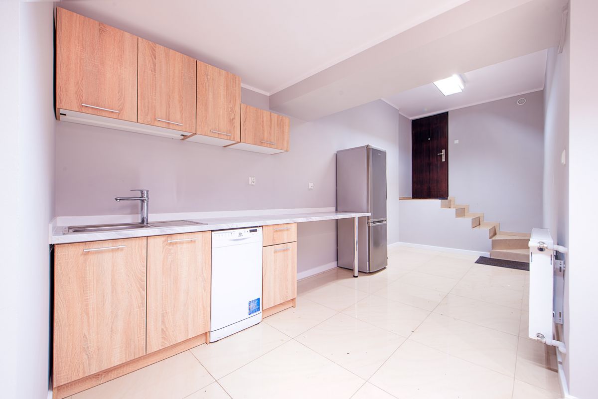 W przyziemiu wydzielona jest kuchnia, łazienka oraz piwnica.