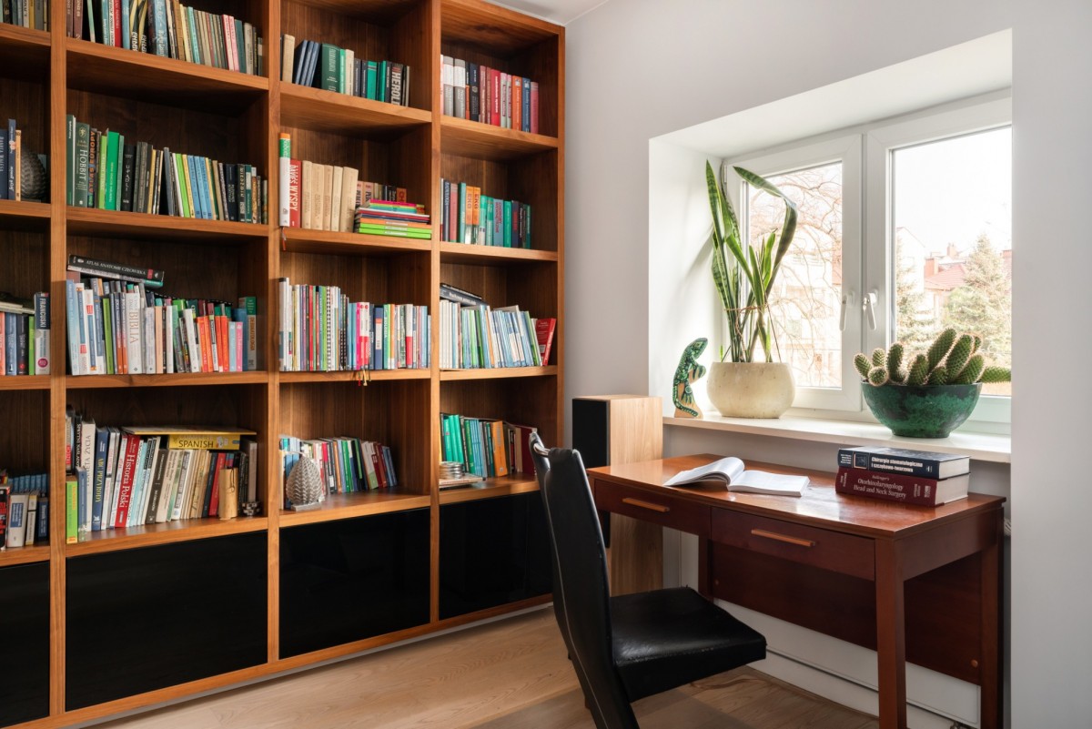 okna od strony ogrodu zapewniają doskonałe doświetlenie oraz piękne widoki na starodrzew