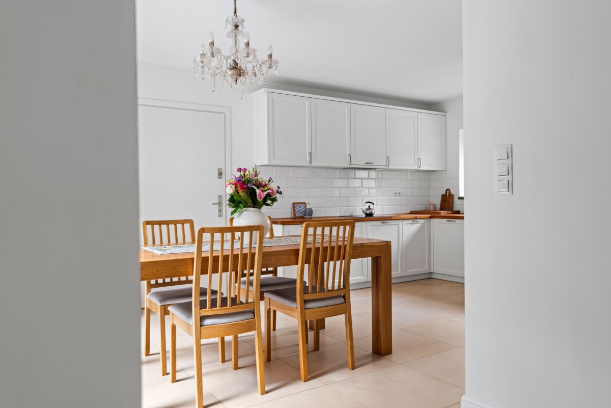 Kuchnia z jadalnią (17 m²) z bezpośrednim dostępem do ogrodu.