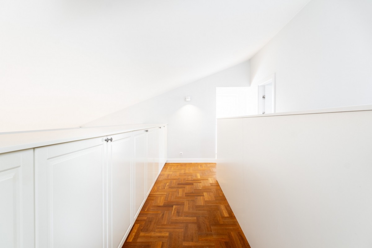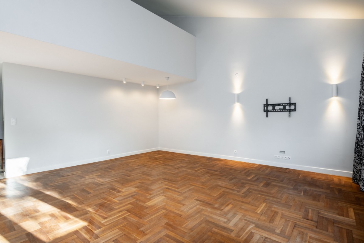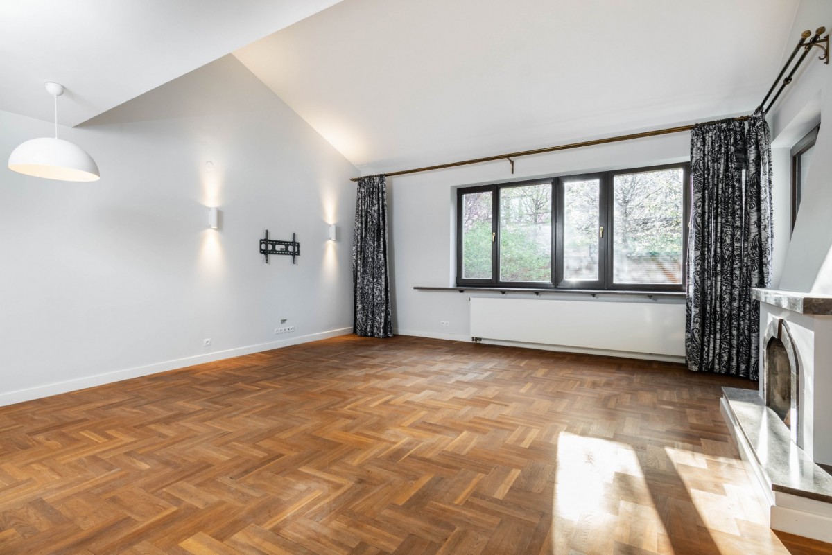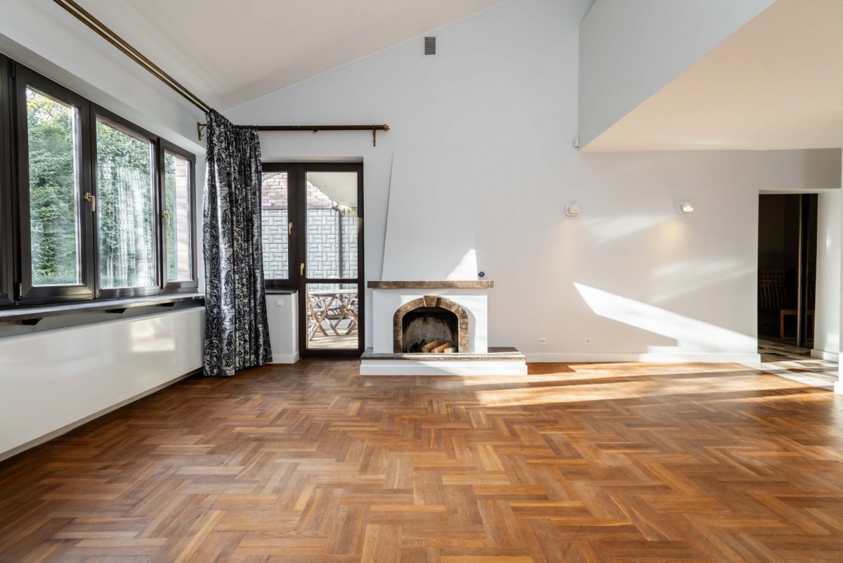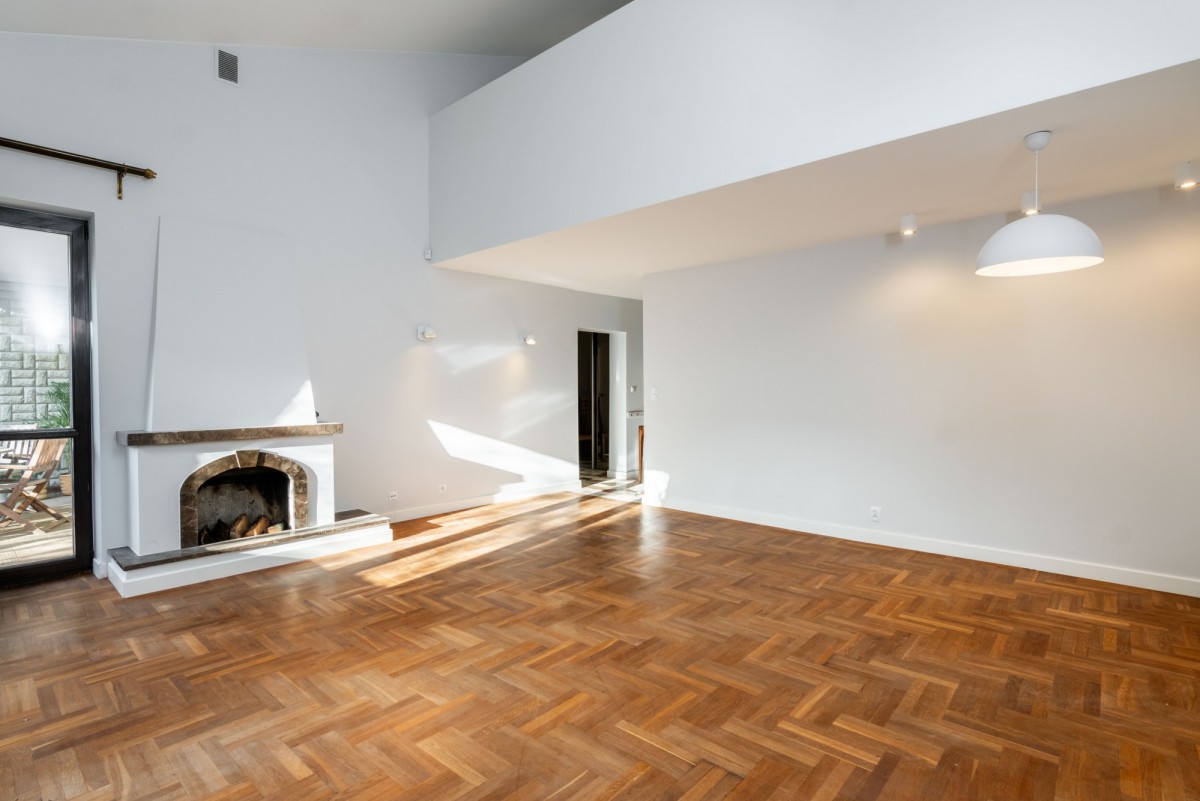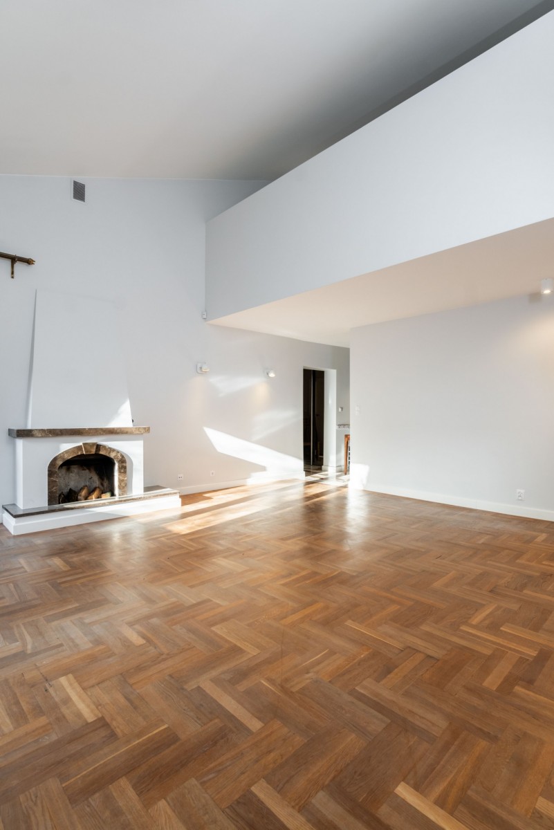 Przestronny salon (35,5 m²) z antresolą i wyjściem na zachodni ogród.
