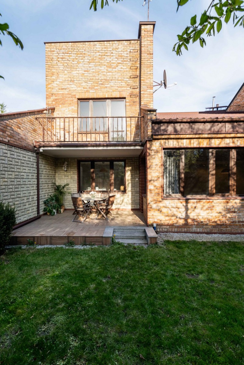 Odkryj wyjątkowy szeregowiec w prestiżowej, zielonej części Saskiej Kępy, zlokalizowany przy ulicy Algierskiej. Ten ponad 170-metrowy dom emanuje brytyjskim klimatem, a jego sercem jest wysoki, dwupoziomowy salon z antresolą o powierzchni ponad 35 m², z bezpośrednim wyjściem na kameralny ogród.