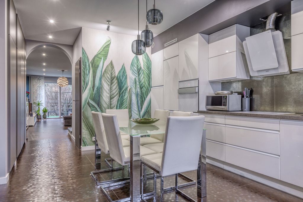 - Widna, w pełni funkcjonalna kuchnia z jadalnią oraz wyjściem na balkon (ok. 8 m²)