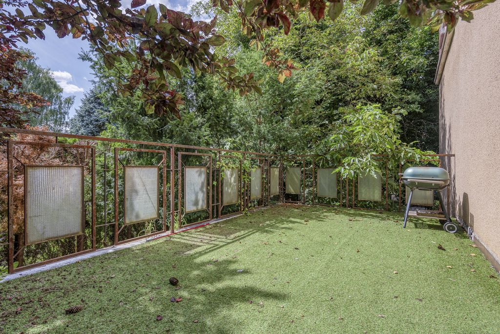 Dom i ogród otoczony drzewami iglastymi, bardzo cicha i spokojna okolica, dominuje zabudowa jednorodzinna (oraz niska, wielorodzinna przy ul. Tużyckiej).