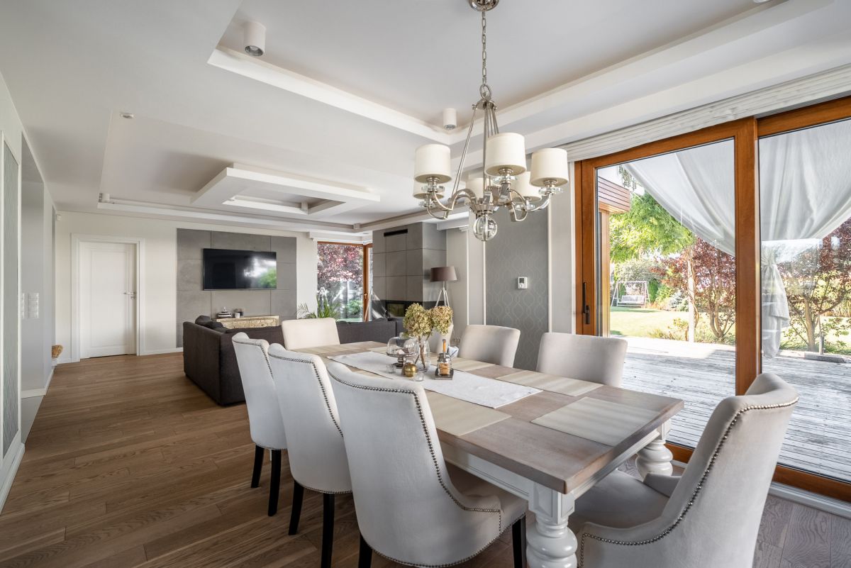 * przestronny salon połączony z jadalnią oraz wyjściem na taras,