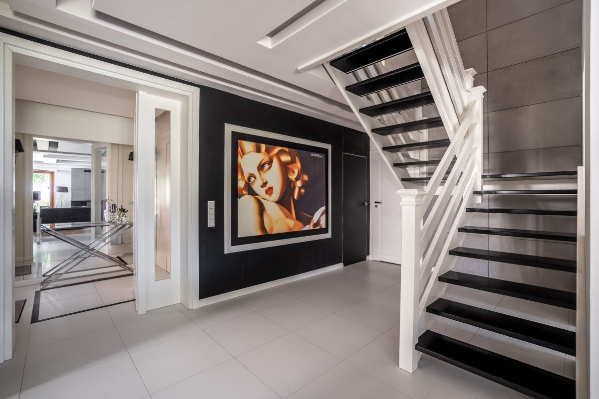 Cały dom posiada ogrzewanie podłogowe, system rekuperacji oraz kominek z płaszczem wodnym. Automatyczne rolety na piętrze oraz zdalnie sterowane zasłony w przestrzeni dziennej.
