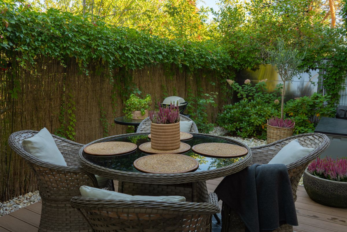 Dom jest na działce o powierzchni 280 m², otoczonej starannie zaprojektowanym ogrodem.