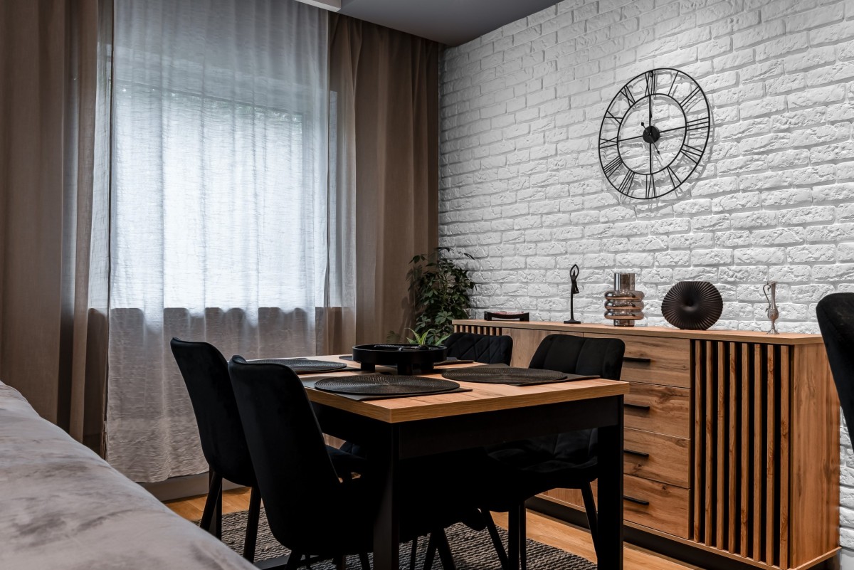 - salon z kominkiem i wyjściem do prywatnego ogródka - idealne miejsce na kawę czy spotkania z bliskimi