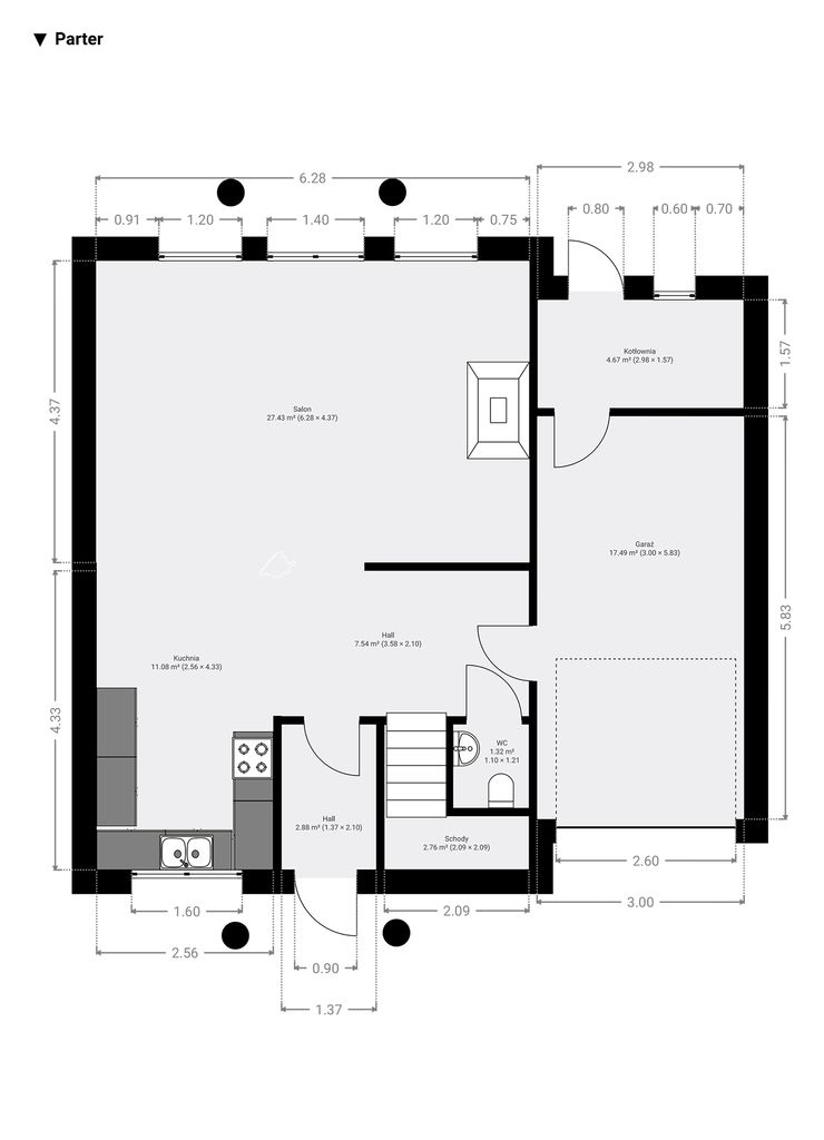 - garaż jednostanowiskowy z wejściem bezpośrednio do domu