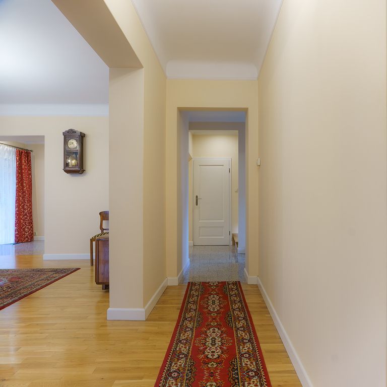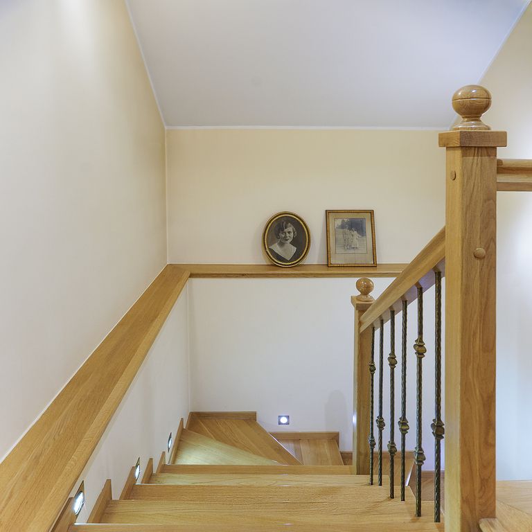 - Wnętrza charakteryzuje dbałość o detal i użycie szlachetnych materiałów. Podłogi na parterze i poddaszu pokrywa drewno dębowe (w sypialniach wykładziny), natomiast w kuchni i jadalni położono ponadczasowy granit. Łazienki są po remoncie, z nowymi glazurami i terakotami. Dom jest bardzo dobrze doświetlony i ma w sumie 6 pokoi.