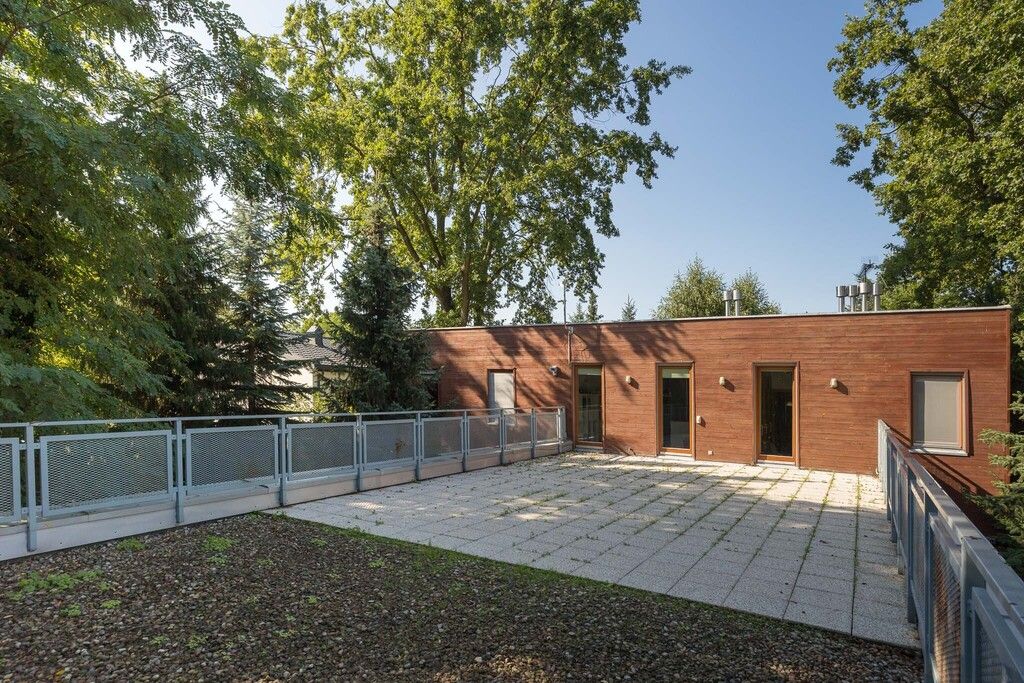 Ten ekskluzywny dom ulokowany jest w najbardziej zielonej części Wawra, tuż przy granicy rezerwatu Króla Jana Sobieskiego.