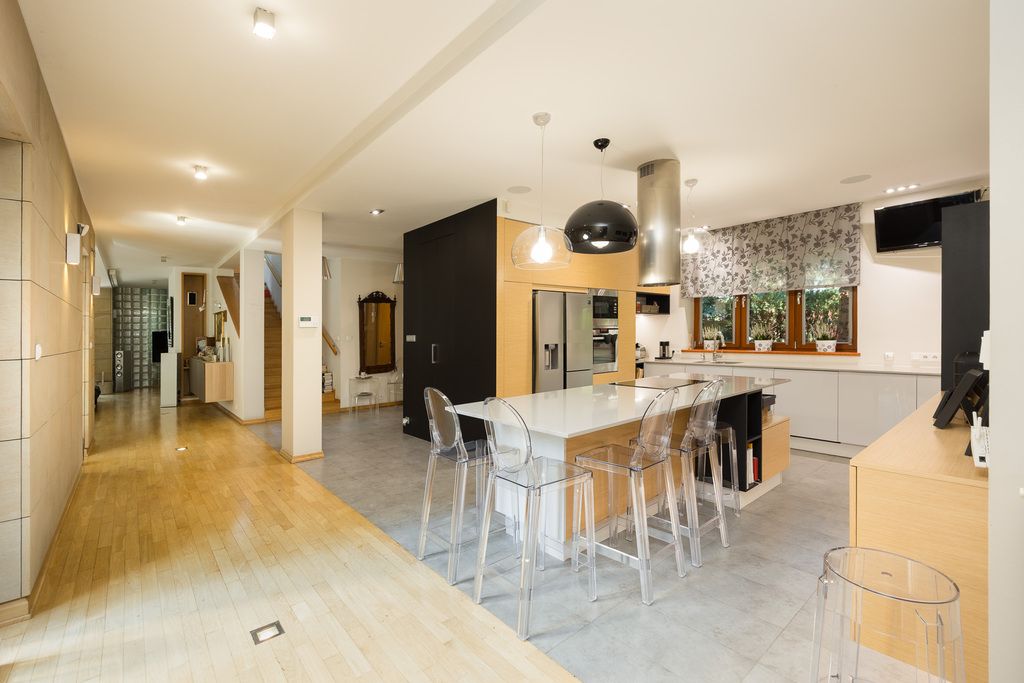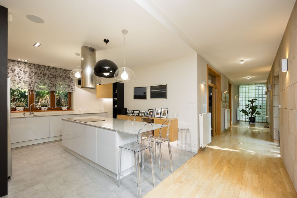 - Wysmakowaną kuchnię z dużą wyspą w centralnym jej punkcie.