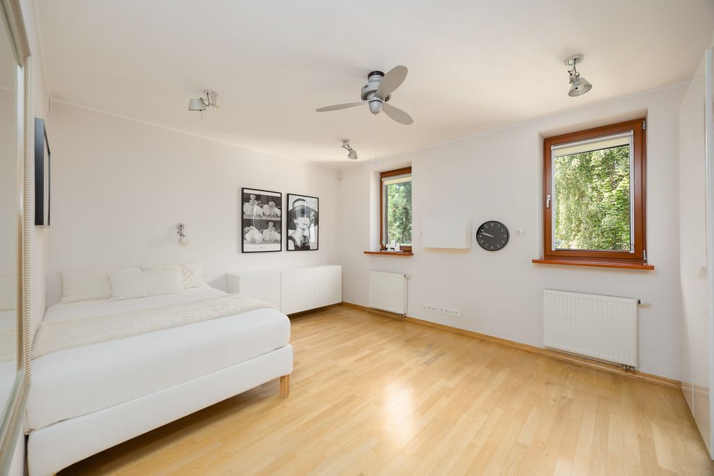 Bezpieczeństwo gwarantuje system alarmowy z pełnym monitoringiem. Komfort termiczny podnosi klimatyzacja zainstalowana w głównej sypialni, z przygotowaną instalacją do łatwego montażu w pozostałych pomieszczeniach.