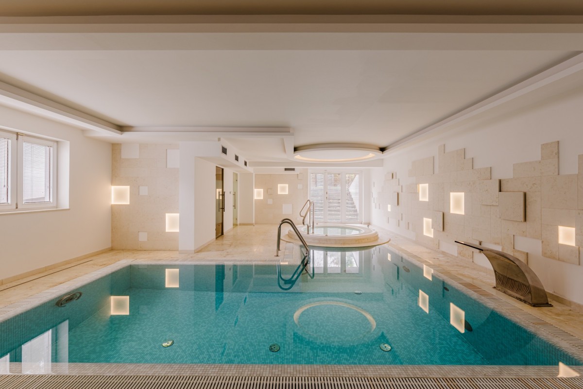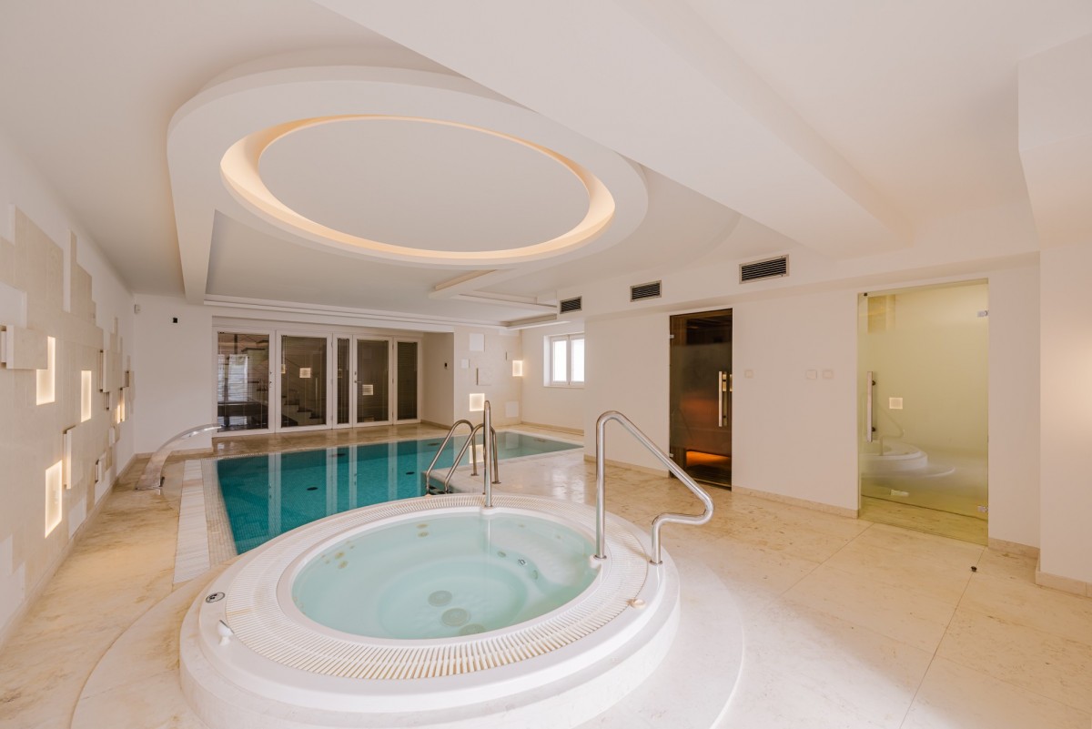 Top of the top to pełnowymiarowa strefa SPA - basen z przeciwprądem, jacuzzi, sauna oraz łazienka - z bezpośrednim wyjściem do ogrodu.