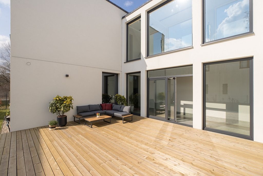 - Wspólna kawa na neutralnym gruncie: łącznik oraz duży, drewniany taras to idealne miejsca na spotkania, które nie naruszają spokoju Twoich domowników