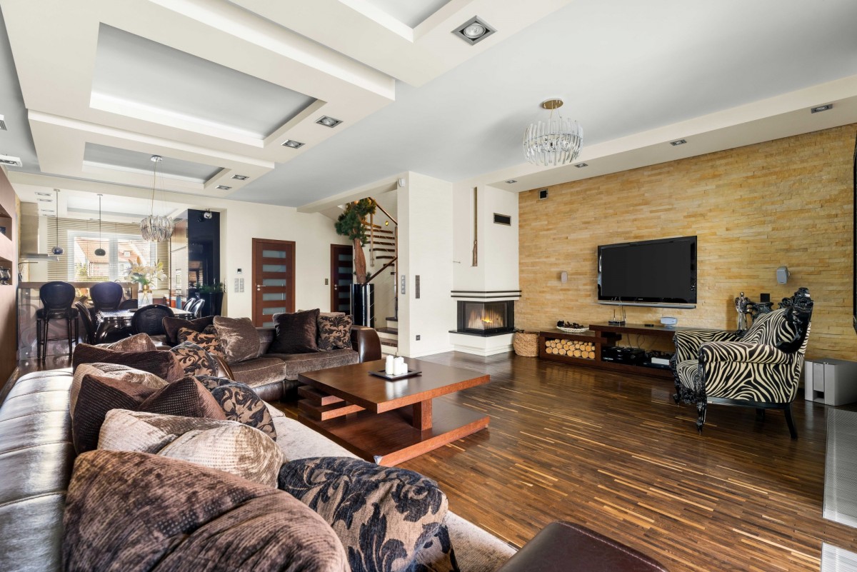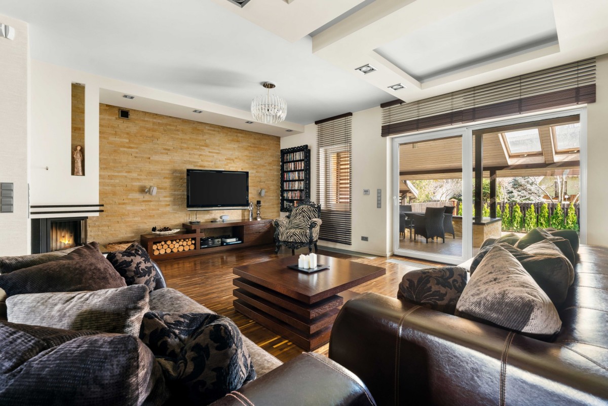 - strefa wypoczynkowa z kominkiem, z bezpośrednim wyjściem na wyjątkowy taras i do ogrodu