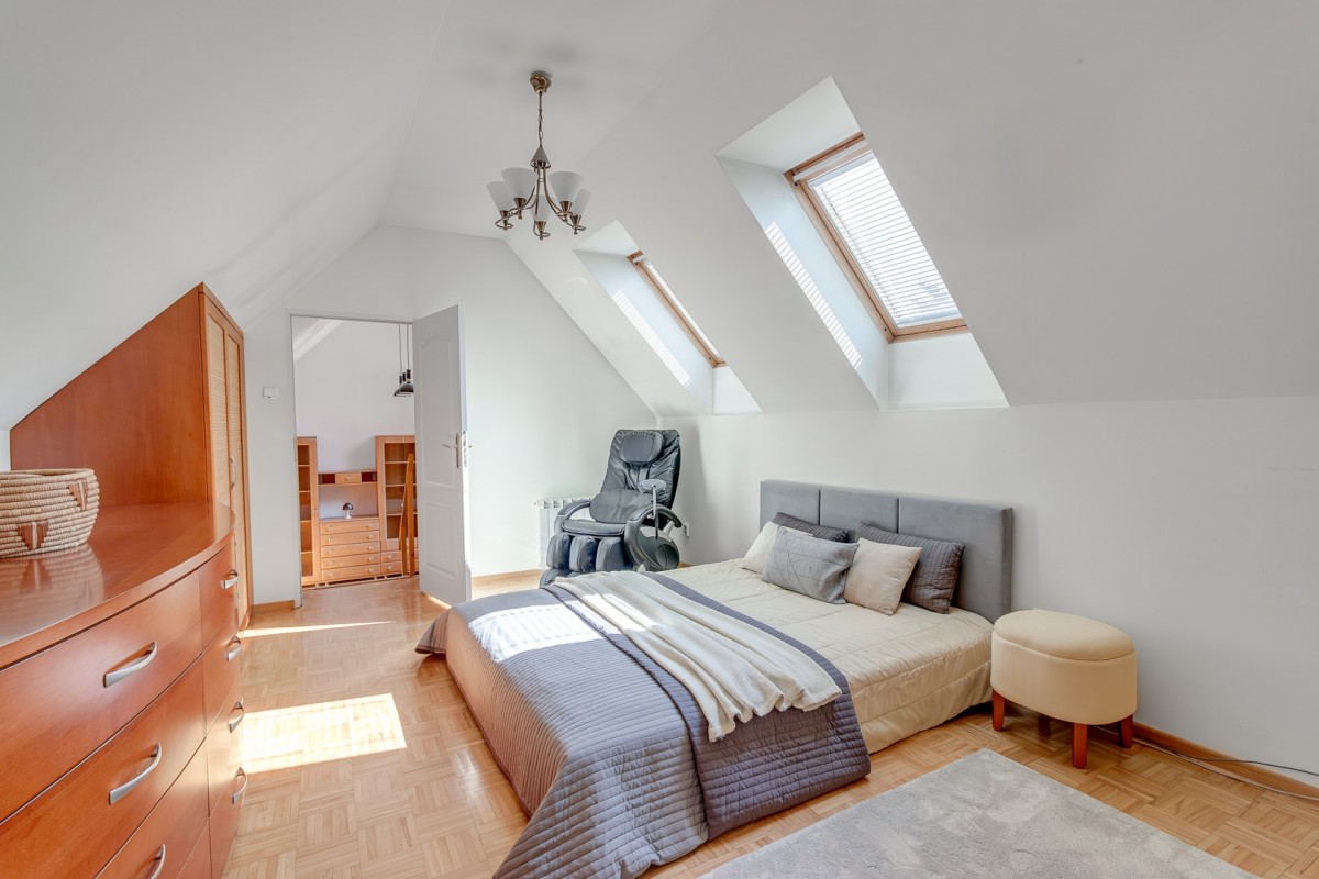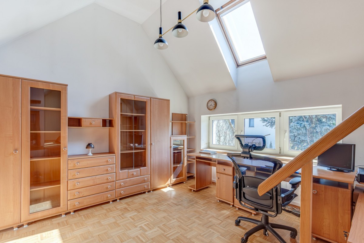 Okna: PCV dwuszybowe, duża ilość naturalnego światła, w tym 10 okien płaciowych (dachowych).