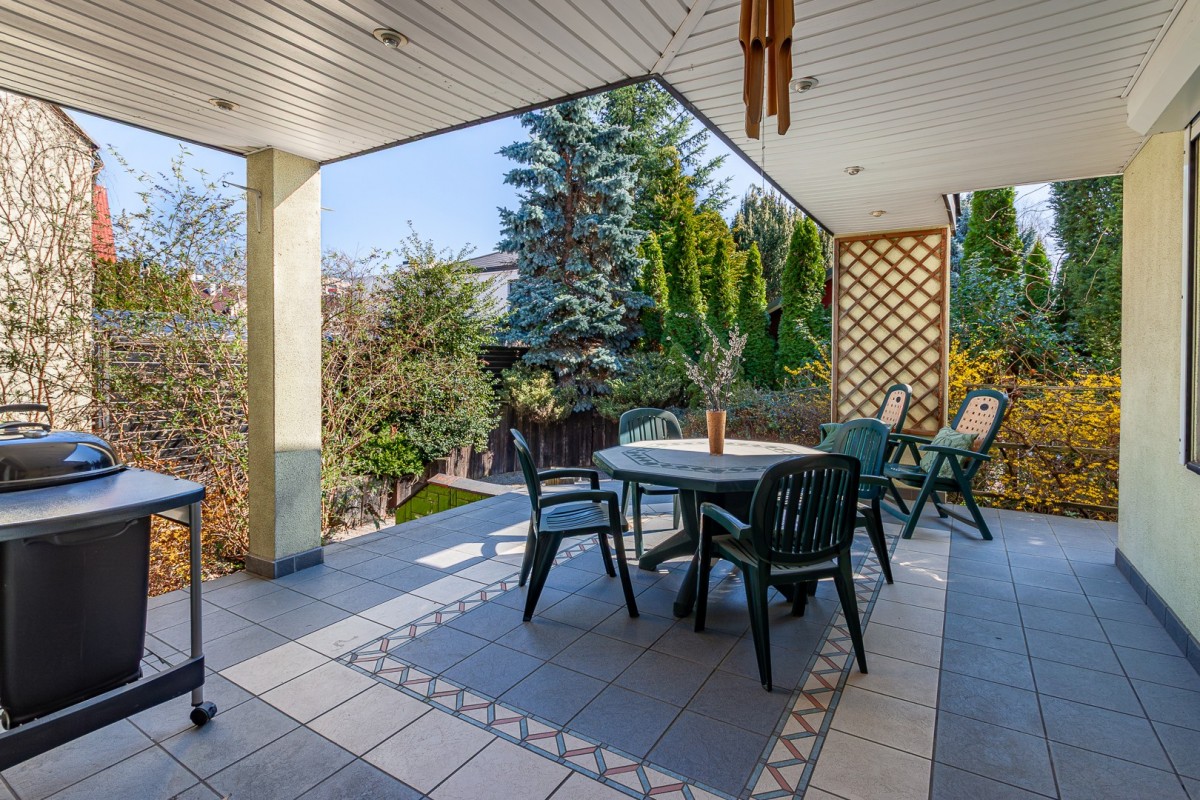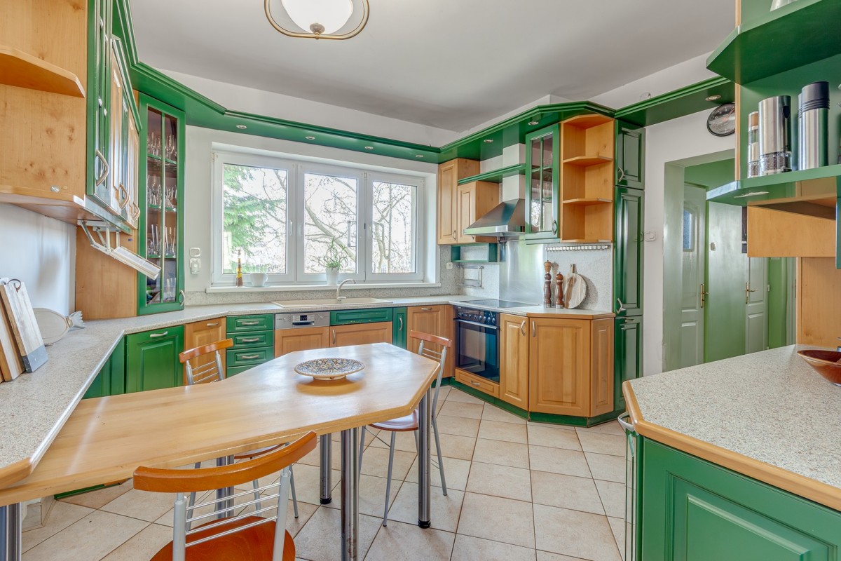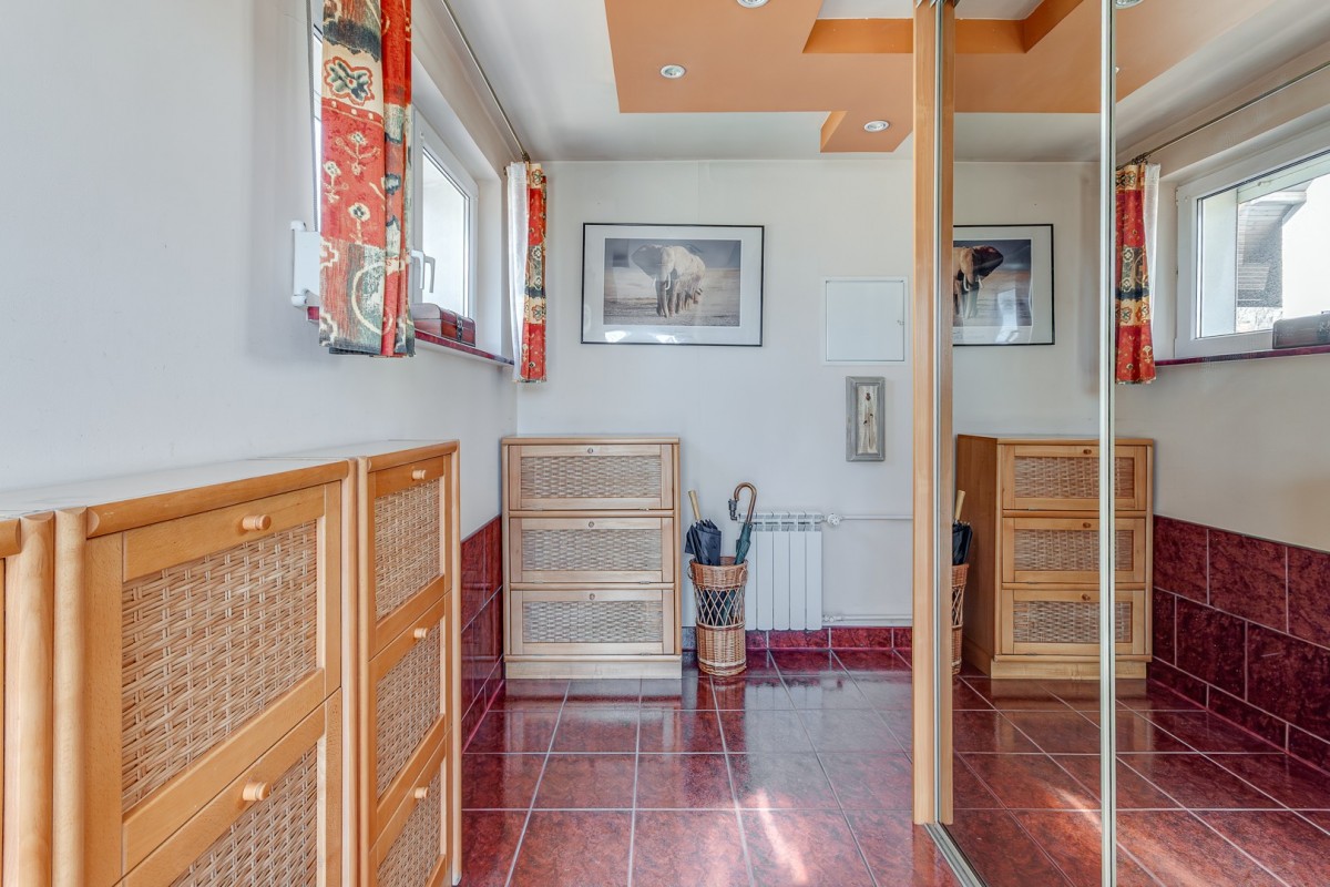 Dom o powierzchni użytkowej 330 m², posadowiony na działce 664 m². Budynek z 1988 roku, zmodernizowany zgodnie z normami termoizolacyjnymi z 2021 roku, co gwarantuje energooszczędność i komfort cieplny. Wykonany z pustaka i ceramiki, urządzony oraz umeblowany.