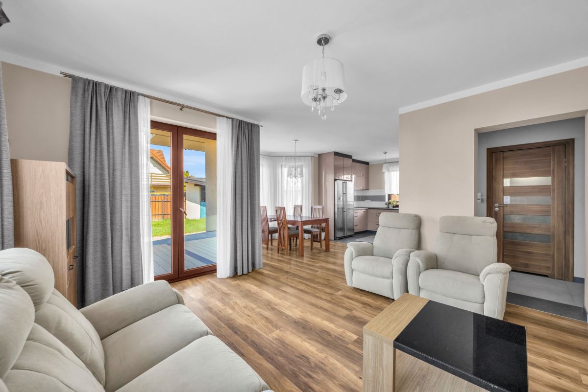 Dom oferuje 190 m² powierzchni całkowitej oraz 140 m² powierzchni użytkowej. Nieruchomość położona jest na działce o powierzchni niespełna 500 m². Budynek ogrzewany jest piecem gazowym, a w całym domu zastosowano ogrzewanie podłogowe, co przekłada się na wysoki komfort codziennego użytkowania.