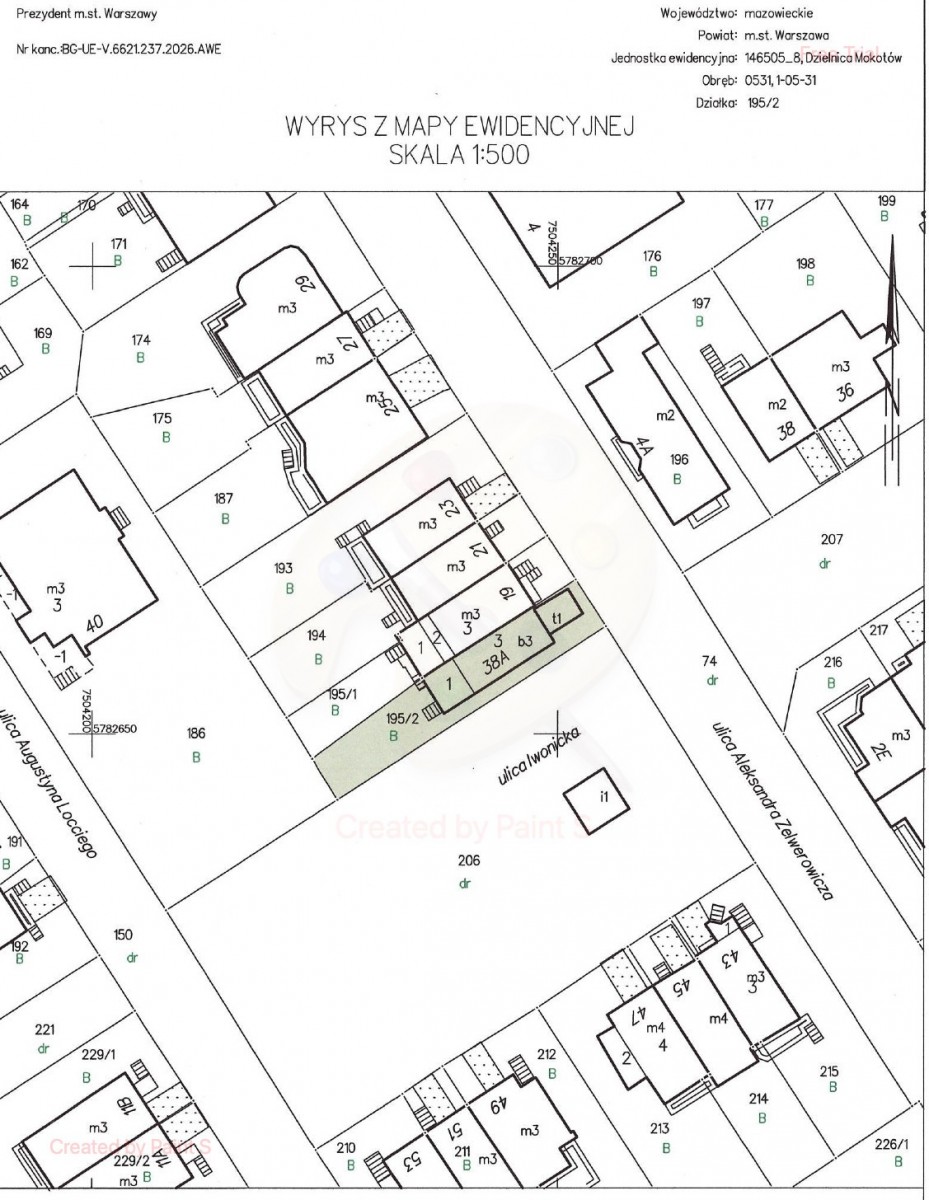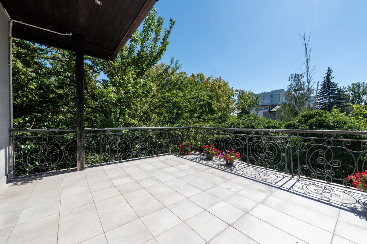 A charming and very green 200m2 plot with numerous plantings, rectangular shape, located in the depths of Sadyba. The segment located on it is currently prepared for business or residential purposes. It offers full office infrastructure, monitoring cameras and air conditioning on each floor. Carpets have been laid on the floors, and wooden boards underneath. The house has huge arrangement potential, a practical layout and a spacious terrace on the first floor. Thanks to the southern, eastern and western exposure, the property lets in a lot of natural light.