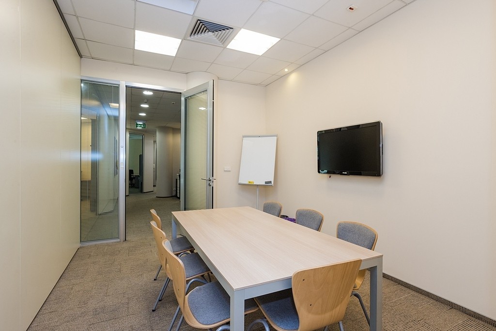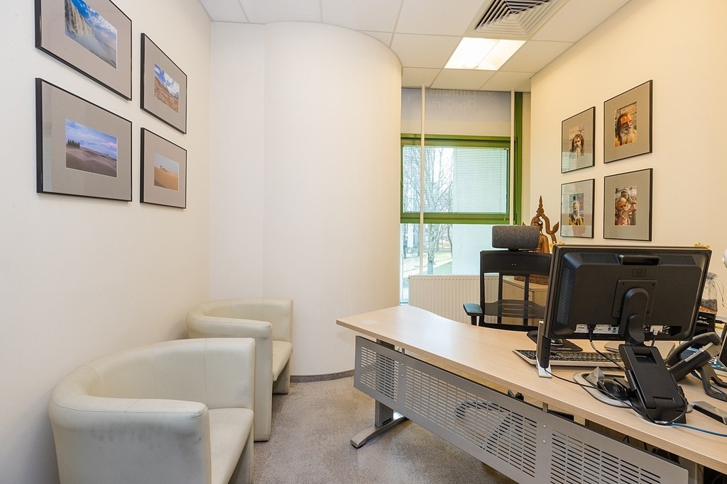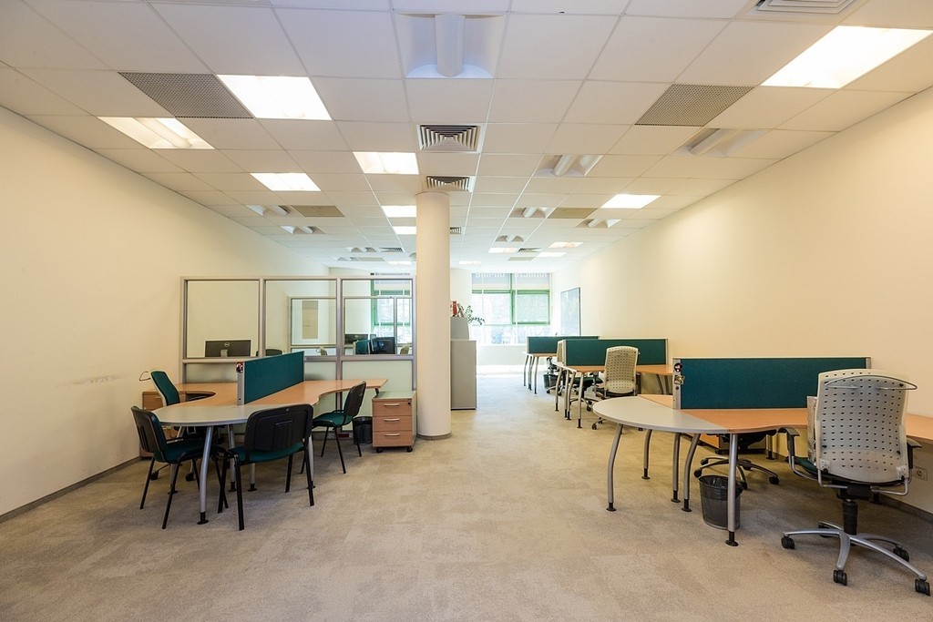 Biuro jest w pełni umeblowane i wyposażone: open space’y posiadają gotowe stanowiska z biurkami i ergonomicznymi fotelami, a gabinety są kompletnie urządzone.
