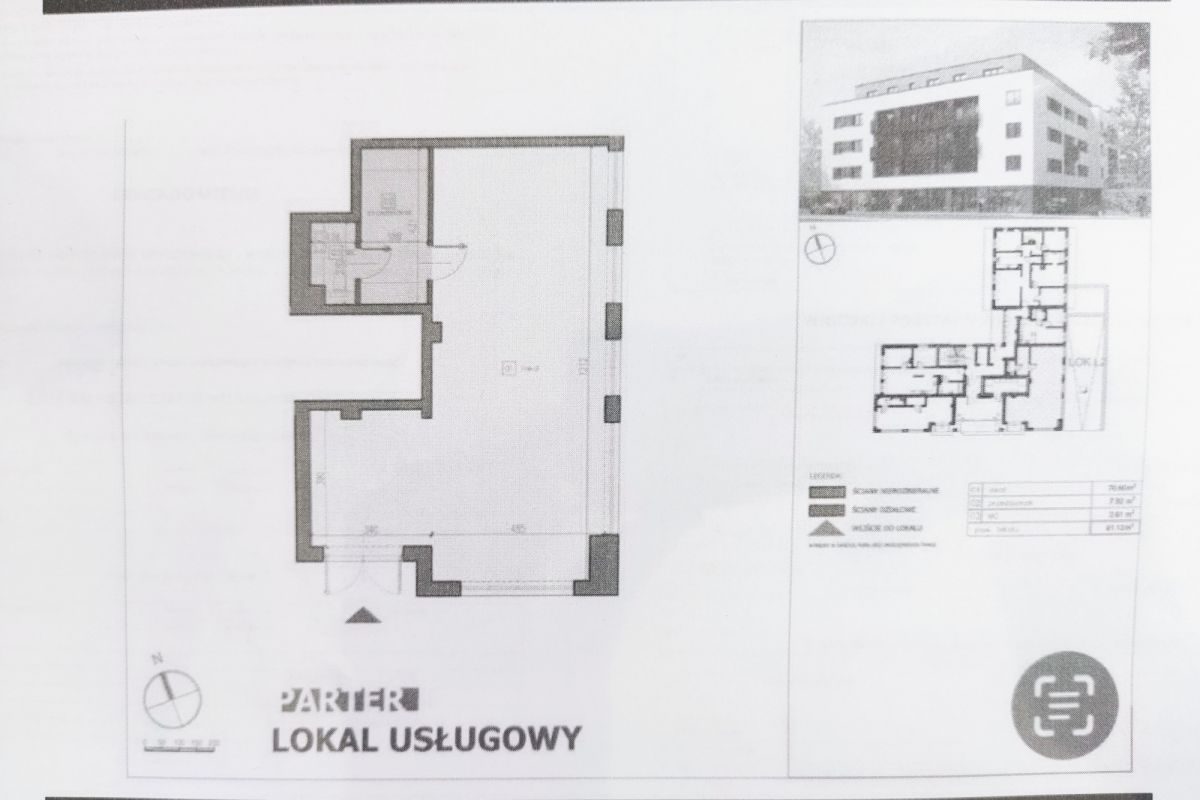 - Pierwotny rzut: ok. 70 m² sali sprzedaży + socjal (rzut w załączeniu).