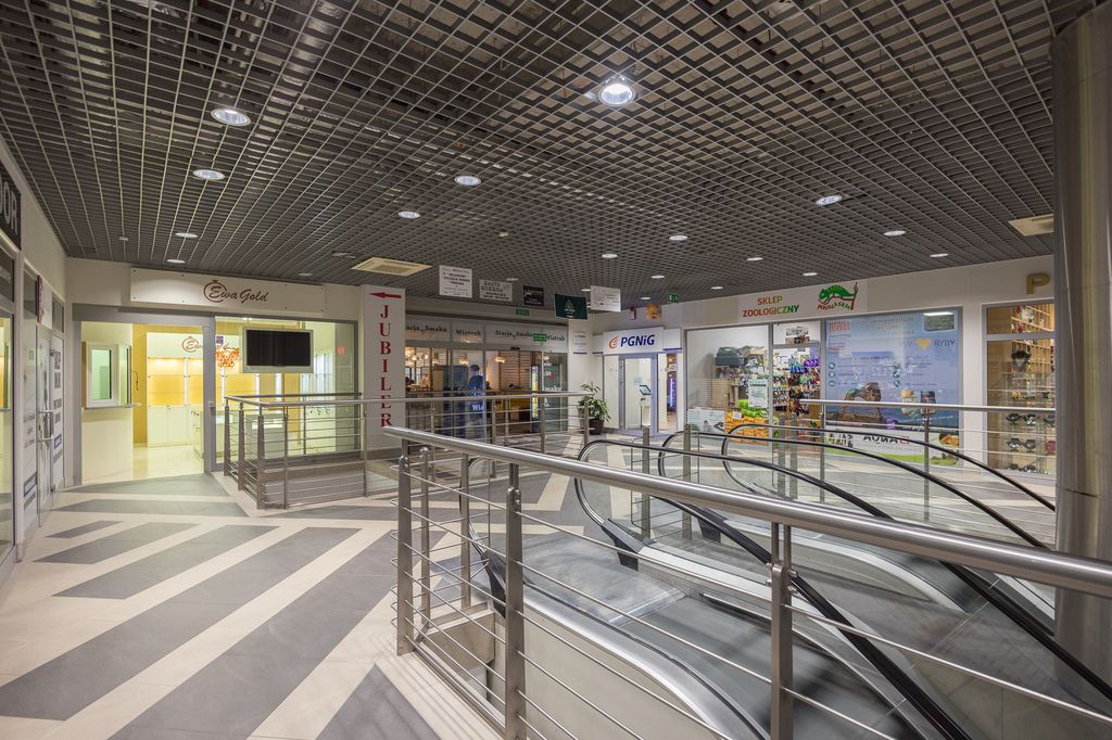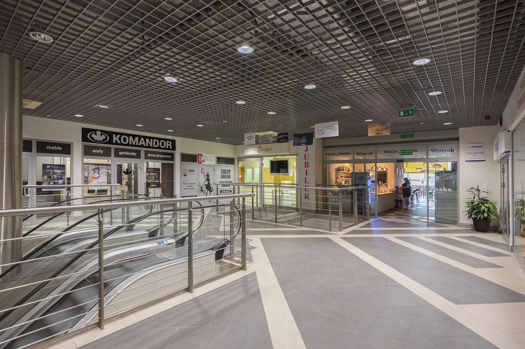 Lokal jest w pełni wyposażony wg. projektu renomowanej pracowni architektonicznej (możliwość przekazania kompleksowego projektu z inwentaryzacją kupującemu), meble, witryny z przeszkleniami na wymiar, wyspa w sali sprzedaży podświetlane LED. Ekrany LCD w sali sprzedaży z przeznaczeniem pełnienia funkcji dodatkowych nośników reklamowych (1 widoczny z zewnątrz, 1 widoczny od wewnątrz). Na ścianach ekskluzywna tapeta, na podłogach wysokiej jakości gres, designerskie oświetlenie. Nowoczesna instalacja elektryczna z systemem zabezpieczeń, alarmem, zabezpieczeniami przeciwpożarowymi z czujnikami dymu i zraszaczami, monitoringiem. Przeszklona witryna z przygotowanym miejscem na powierzchnię reklamową (np. logo firmy). W pełni wyposażone zaplecze socjalne z kuchnią oraz WC dla personelu. Oddzielne pomieszczenie z dodatkowymi zabezpieczeniami - kantor z pancernymi szybami i drzwiami spełniającymi rygorystyczne normy towarzystw ubezpieczeniowych. W lokalu do 2021 roku znajdował się salon jubilerski z ekskluzywną biżuterią. Lokal idealny do prowadzenia działalności gospodarczej handlowej lub usługowej. Położony w miejscu o dużym natężeniu ruchu bezpośrednio przy schodach ruchomych (każdy klient galerii wjeżdża na I piętro na wprost lokalu), obok dobrze prosperująca restauracja, biuro obsługi PGNiG, punkt handlowy Szafy i Zabudowy Komandor, ponadto w Galerii - Banki, Auchan, kawiarnia, cukiernia liczne punkty handlowe, usługowe, salony piękności, Fitness.
