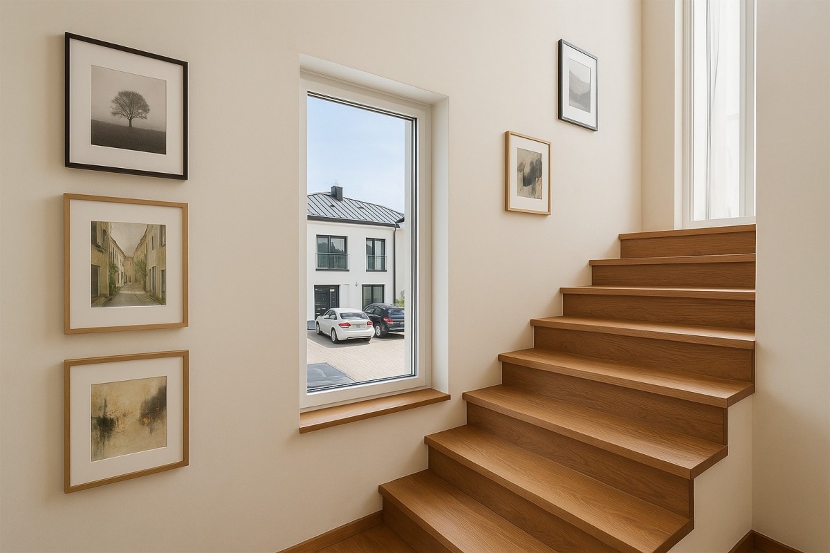 - Schody na półpiętro od południa - doskonała przestrzeń na galerię obrazów