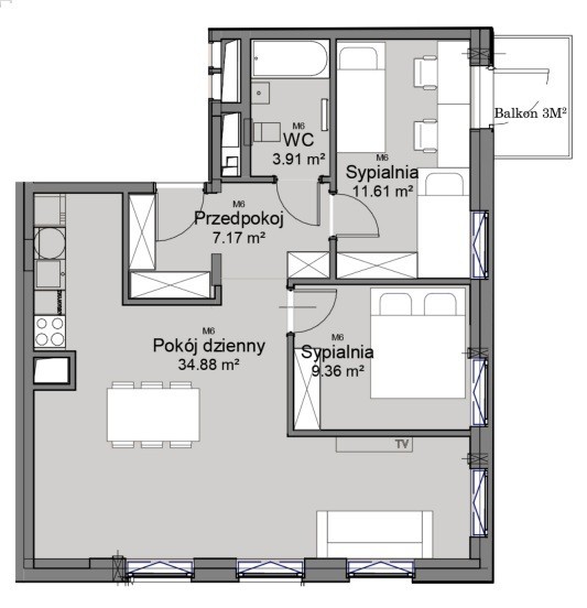 - Liczba pokoi: 3