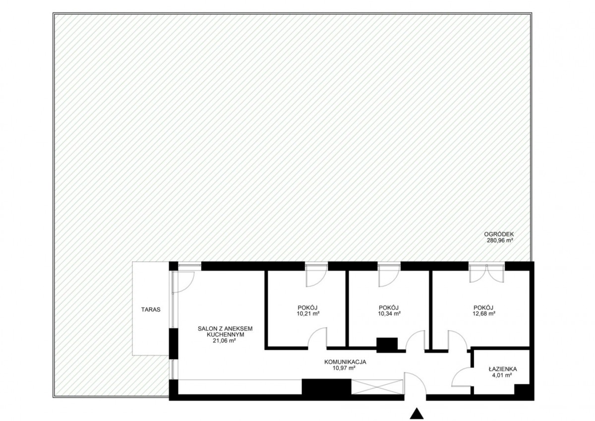 Do mieszkania przynależy ogródek 280.96 mkw.