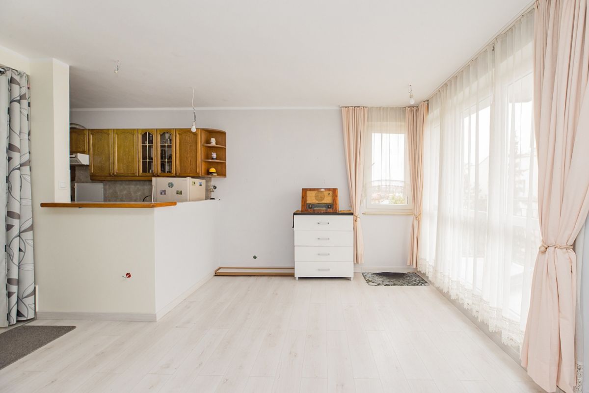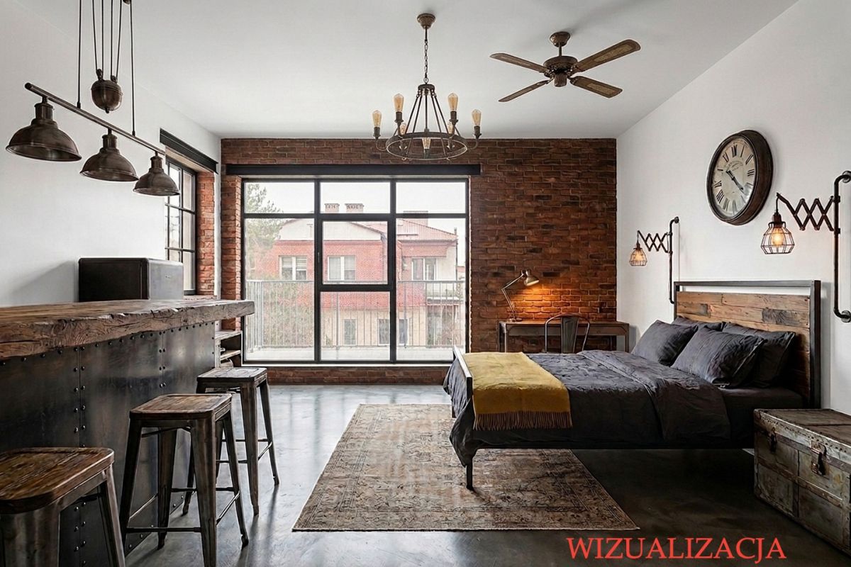 Potencjał aranżacyjny: Obecny układ to przestronny salon z aneksem kuchennym, jednak metraż i rozmieszczenie okien pozwalają na wydzielenie oddzielnej, widnej sypialni przy zachowaniu funkcjonalnego pokoju dziennego.