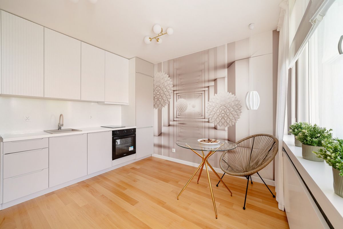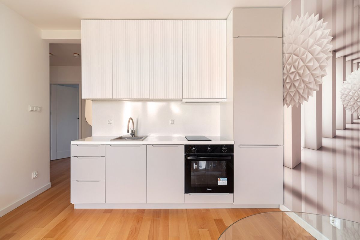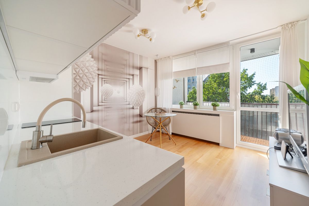 - przestronny salon z aneksem kuchennym oraz wyjściem na balkon,