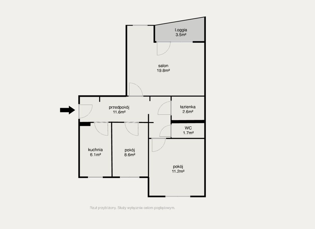 - salon – 19,7 m² (z wyjściem na loggię 3,5 m²),