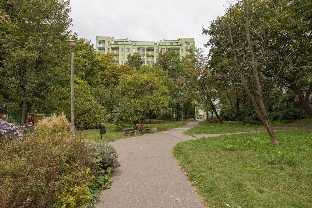 Mieszkanie położone jest w zielonej części Bemowa, tuż obok Parku Górczewska – idealnego miejsca na spacery, rekreację i rodzinne aktywności. W parku znajdziemy place zabaw, amfiteatr, tężnię solankową oraz wybieg dla psów, a w nieco dalszej odległości dostępny jest także Las Bemowski.