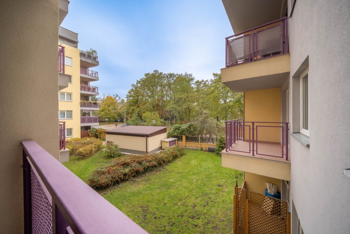 Mieszkanie znajduje się na zamkniętym osiedlu, tuż przy wejściu na osiedle jest przystanek autobusowy z którego dojedziemy do Metra.