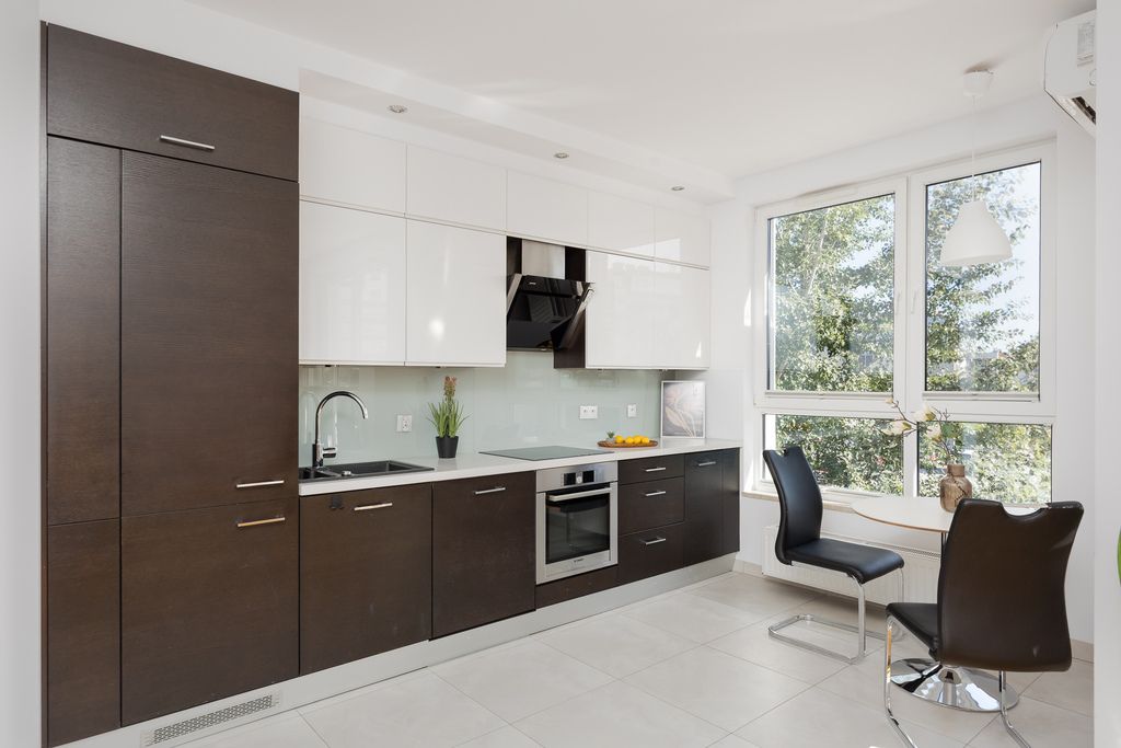 Mieszkanie w bardzo dobrym stanie technicznym, gotowe do zamieszkania od zaraz. W salonie i w sypialni na podłodze jest parkiet, natomiast w przedpokoju i części kuchennej - terakota. Kuchnia zabudowana jest meblami na wymiar i wyposażona w sprzęt AGD (lodówka, zmywarka, kuchenka, piekarnik oraz okap). W przedpokoju oraz w pokojach znajdują się praktyczne szafy wnękowe. Łazienka została wykończona glazurą i terakotą, wyposażona w kabinę prysznicową, WC, umywalkę oraz pralkę.