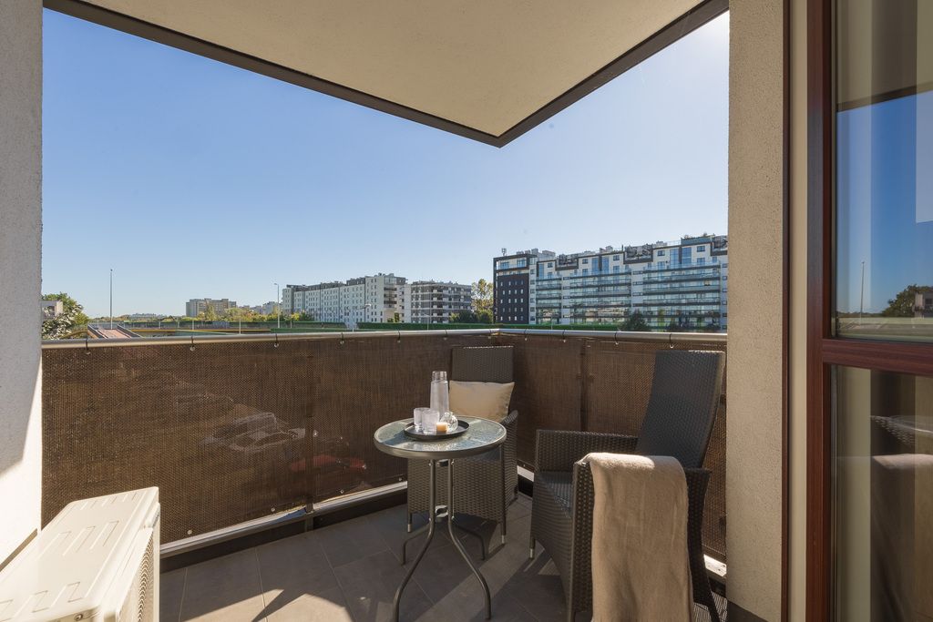 Ekspozycja wschodnio-południowa. Mieszkanie wyposażone w klimatyzację i wideofon. Nieruchomością zarządza wspólnota, czynsz wynosi ok. 940 zł/msc. Mieszkanie własnościowe z księgą wieczystą, możliwość zakupu na kredyt. Budynek ogrodzony, chroniony i monitorowany z placem zabaw, zielonym patio oraz ławeczkami dla mieszkańców.