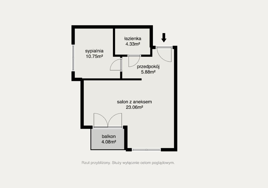 Nieruchomość o powierzchni 44,70 m2 składa się z następujących pomieszczeń: