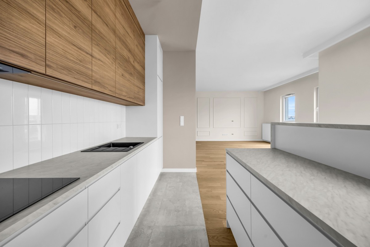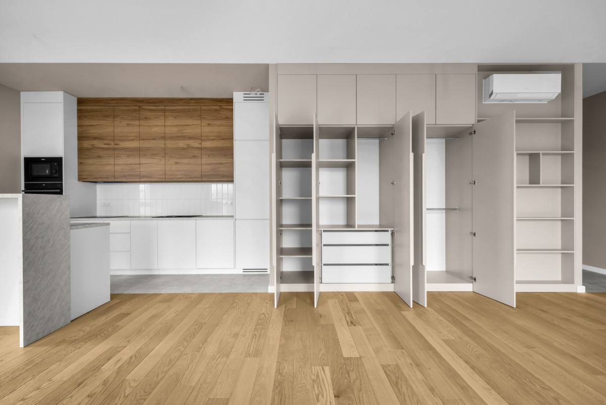 - funkcjonalna zabudowa kuchenna ze sprzętem AGD: płyta indukcyjna, piekarnik, zmywarka,