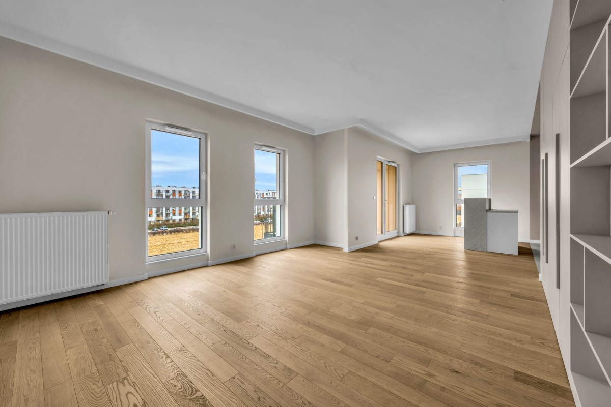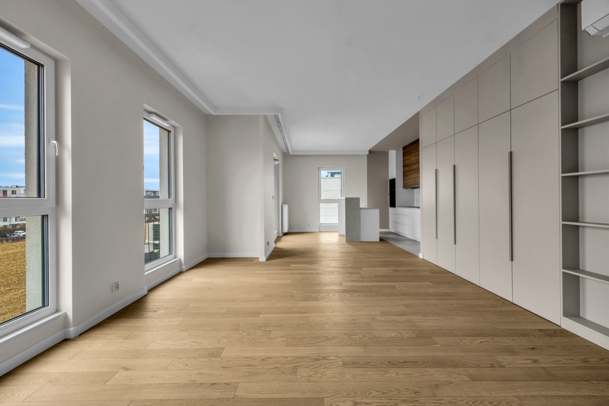 Oferujemy jasne i przestronne mieszkanie o powierzchni 105,71 m², położone na 4. piętrze nowoczesnego budynku z windą na osiedlu Lumea, zrealizowanym przez Bouygues Immobilier Polska. Nieruchomość znajduje się w spokojnej części Bemowa, zaledwie 700 m od planowanej stacji Metra Chrzanów (oddanie do użytku w 2026 roku).